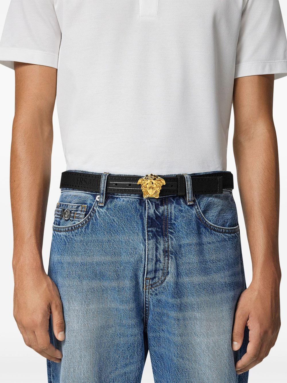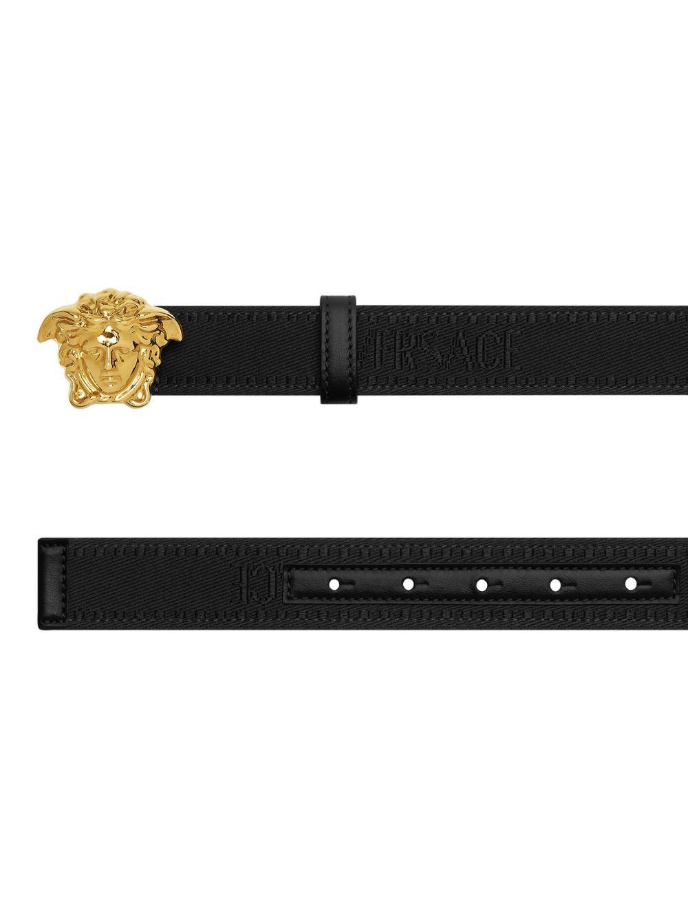Shop Versace La Medusa Leather Belt In Black from 600+ stores, starting at $475. black clip-on buckle fastening punched holes single loop
