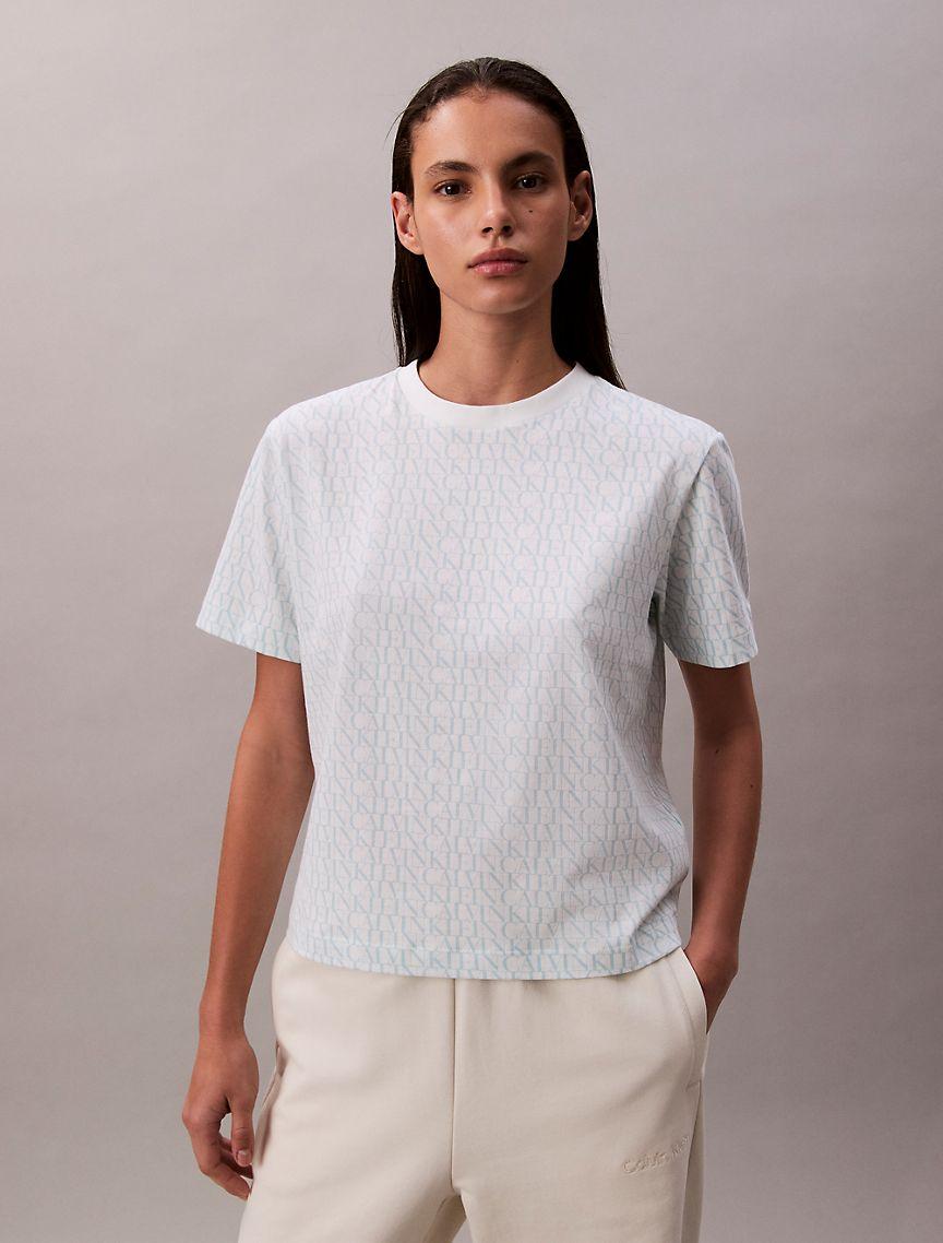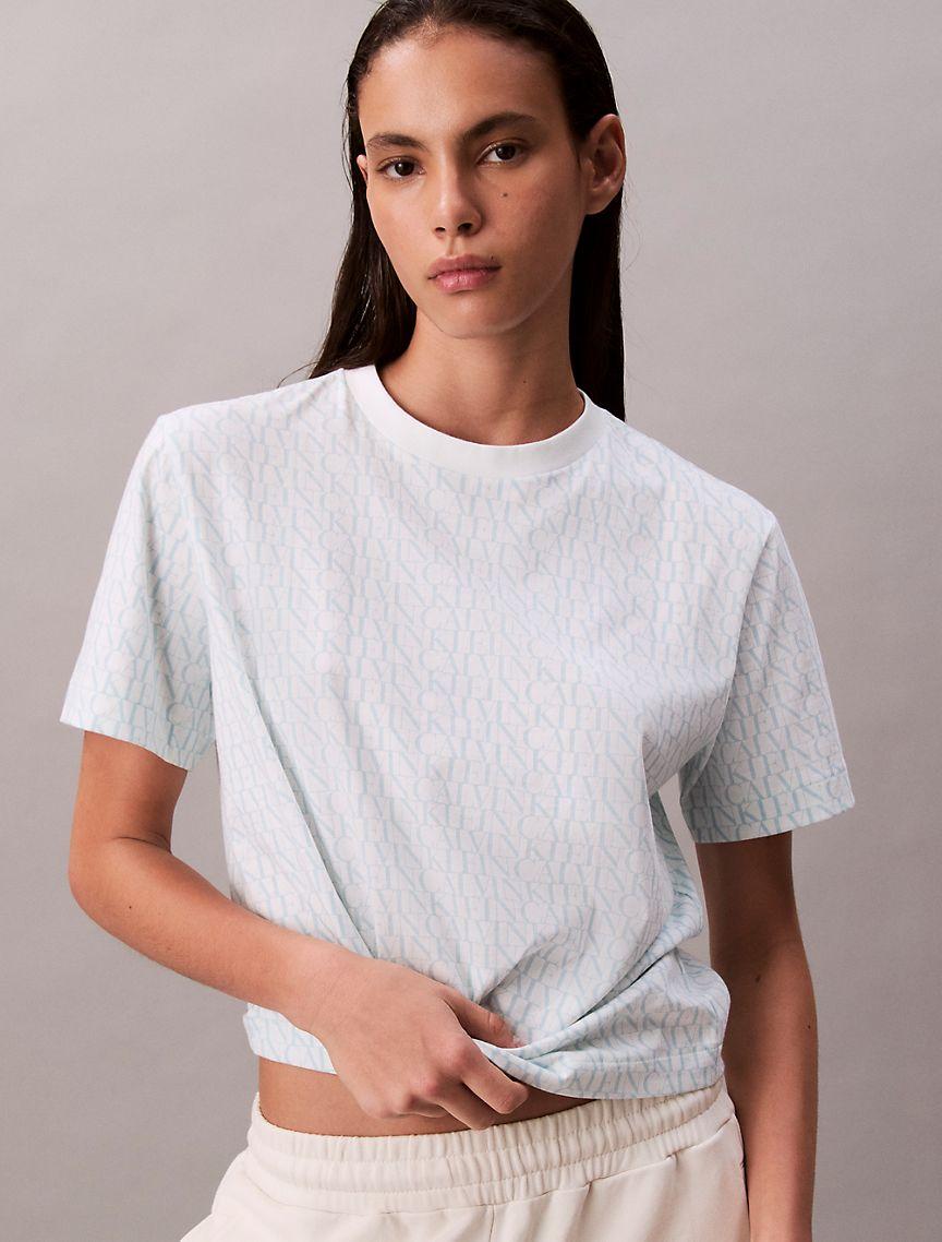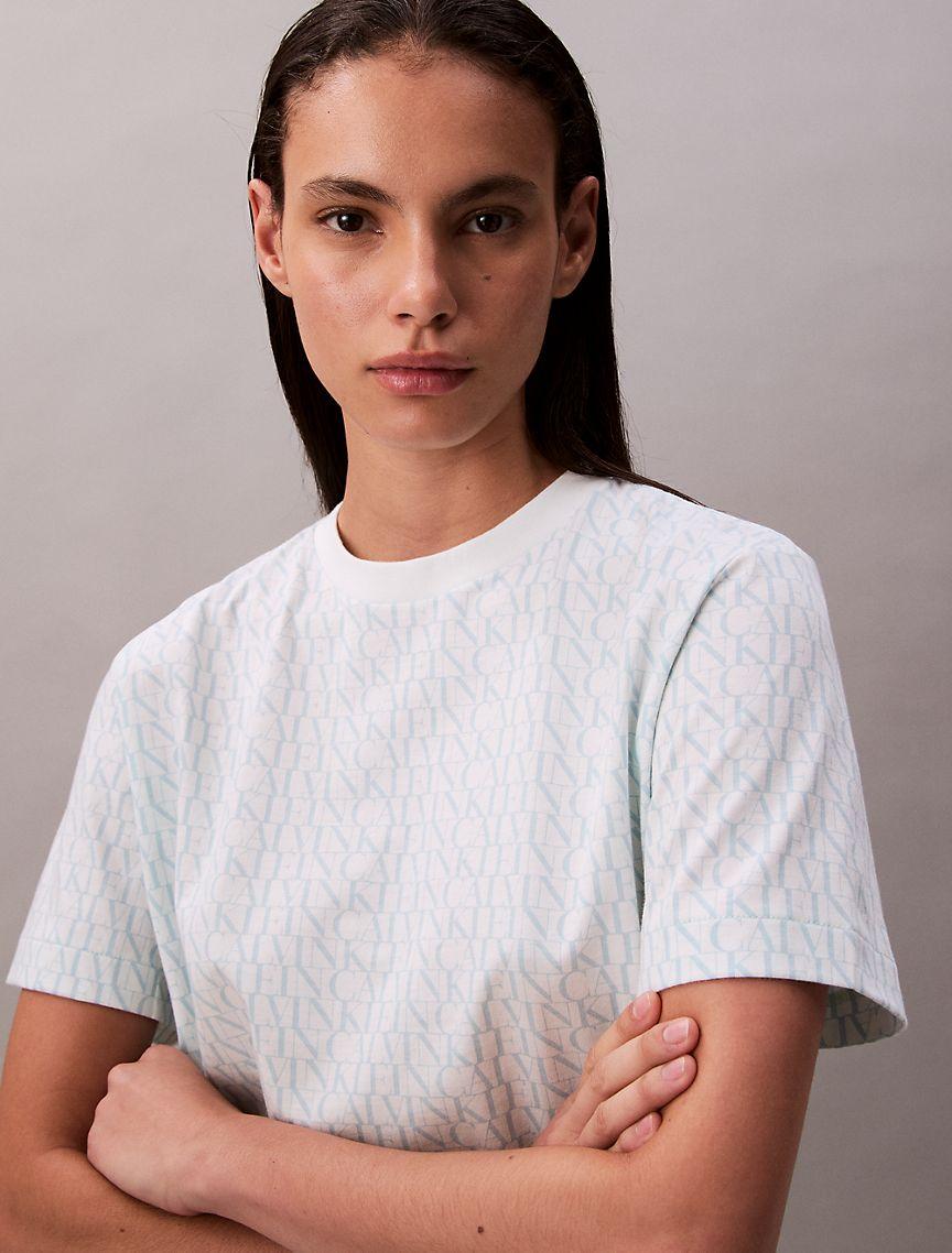 Calvin Klein Womens Allover Monogram Boxy T-Shirt - Multi