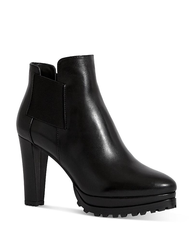 Cruise around the world in the ultrachic AllSaints Sarris ankle bootie. Calf leather upper in a Chelsea silhouette with a pull-on design with dual goring. AllSaints women's footwear runs large. Brand suggests sizing down from your normal size. Breathable leather lining and cushioned footbed. High block heel and durable rubber outsole. Imported. Measurements: Heel Height: 3 1 2 in Weight: 15 oz Platform Height: 1 in Product measurements were taken using size 8, width M. Please note that measurements may vary by size.