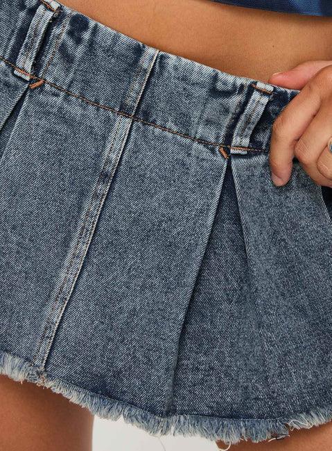 Low-Rise Ripped Dark Wash Denim Mini Skort