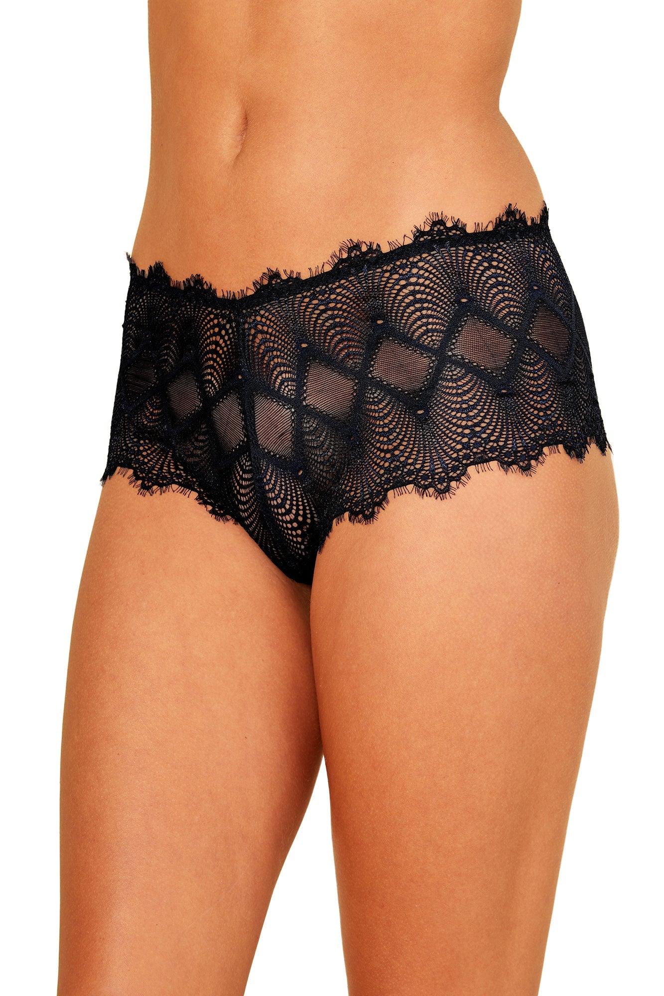 Experience the elegance of our low rise lace boyshort. Allure Hotpant features a semi-sheer eyelash lace and wide-lace waistband for your unparalleled comfort. Cotton lined gusset for perfect comfort. Product Care : Hand Wash. Line Dry Material : Lace: 88% Polyamide 12% Elastane, Body: 83% Polyamide 17% Elastane, Gusse