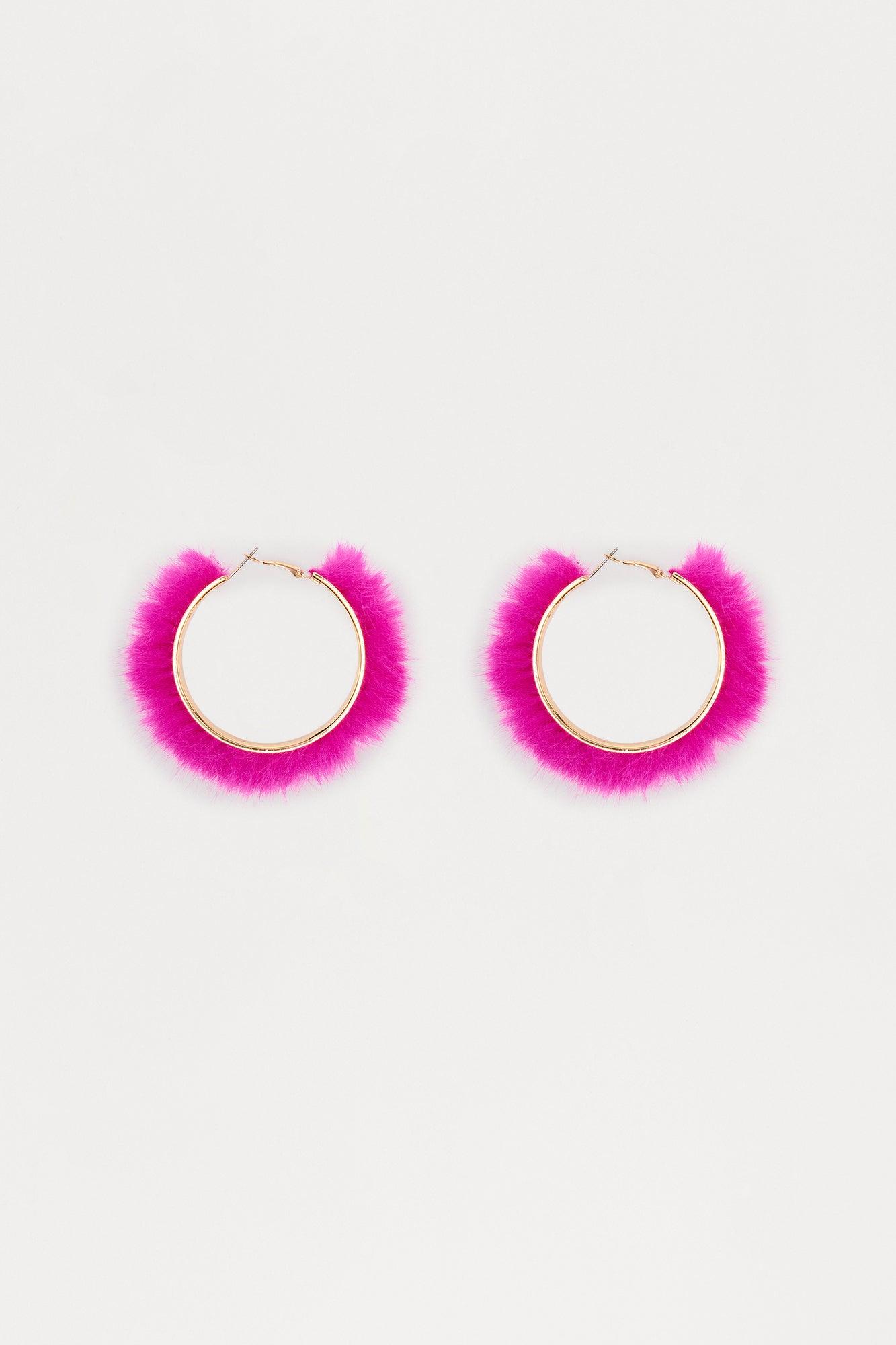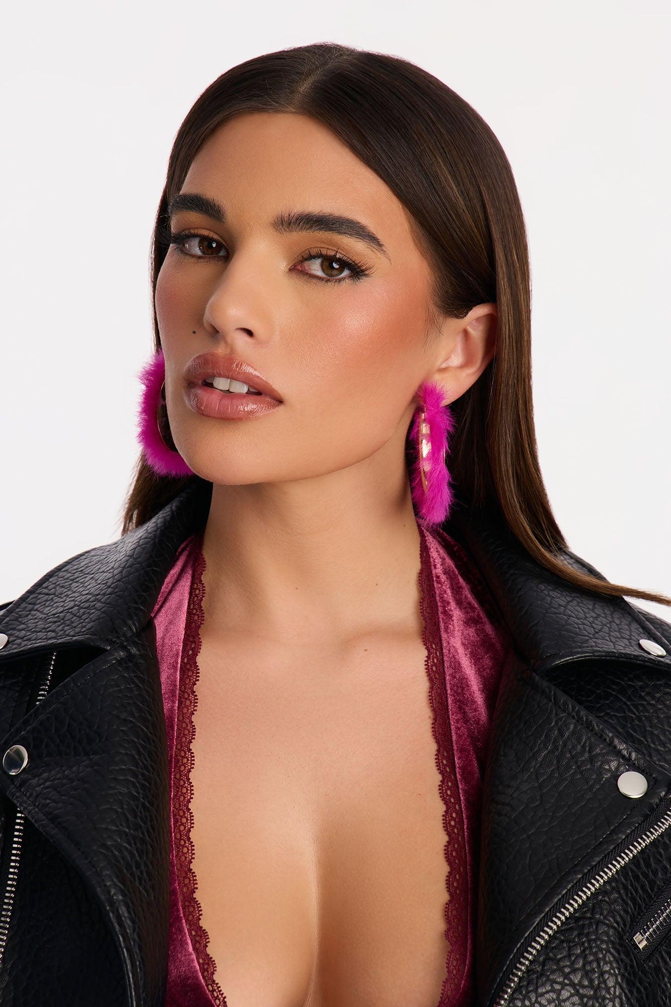 Allurement Feather Trim Hoop Earrings - Fuchsia Female