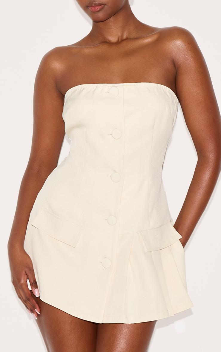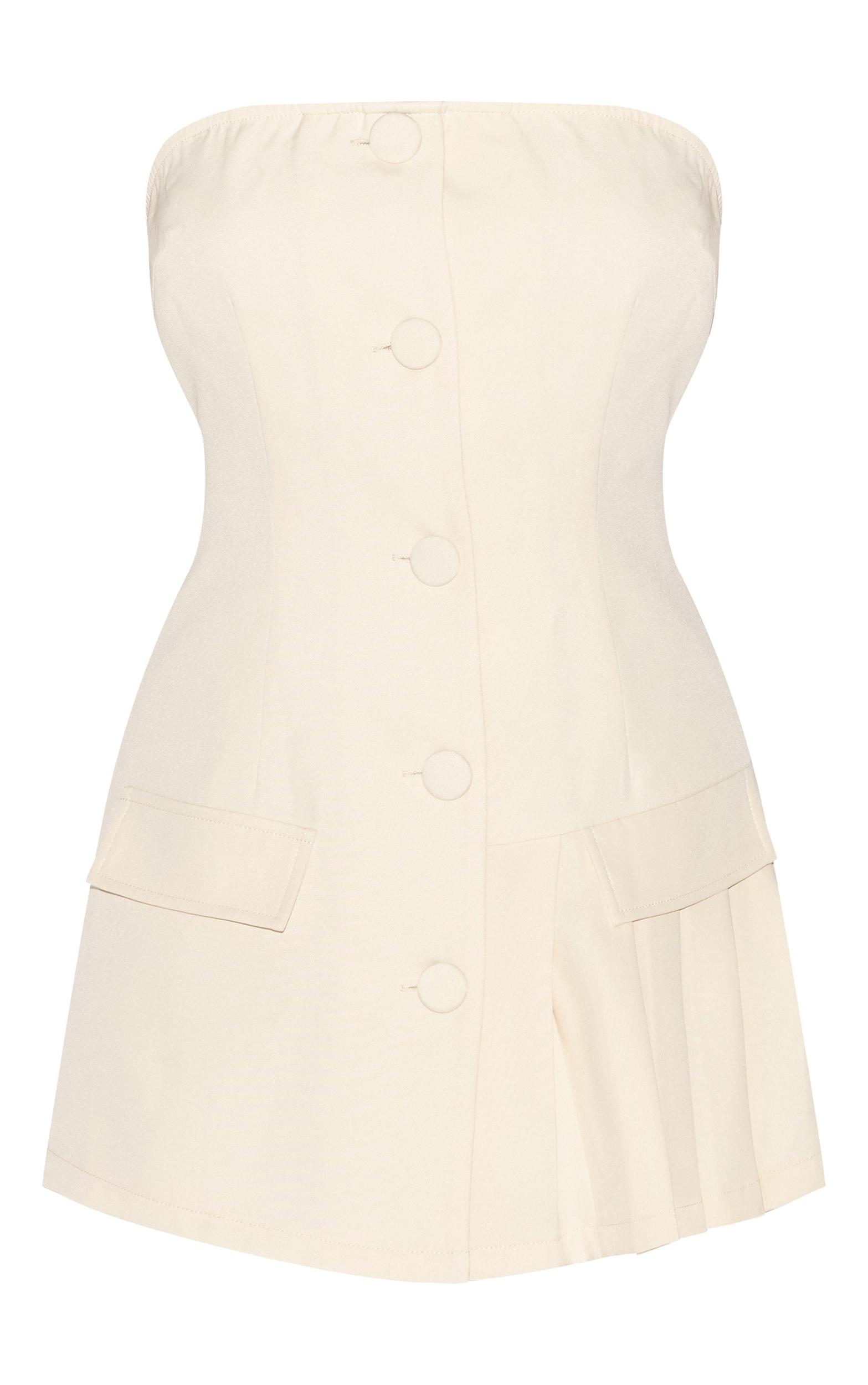 This almond tailored pleat detail bandeau romper is here to solve all of your weekend wardrobe dilemmas. Made from an almond hue material with a bandeau neckline and pleat detailing, how can you resist? Style this tailored romper with heels and simple gold accessories for a chic look that is sure to turn heads.Length approx 58.5cm/23inch (Based on sample size US 4)Model wears size UK 8/ EU 36/ AUS 8/ US 4Model Height - 5ft 9inchp]:!mb-4inch>Brand: PrettyLittleThingCategory: Jumpsuits & PlaysuitsProduct type: Skort PlaysuitColor: AlmondMaterial: Tailored WovenDesign: PlainNeckline: BandeauOccasion: Evening