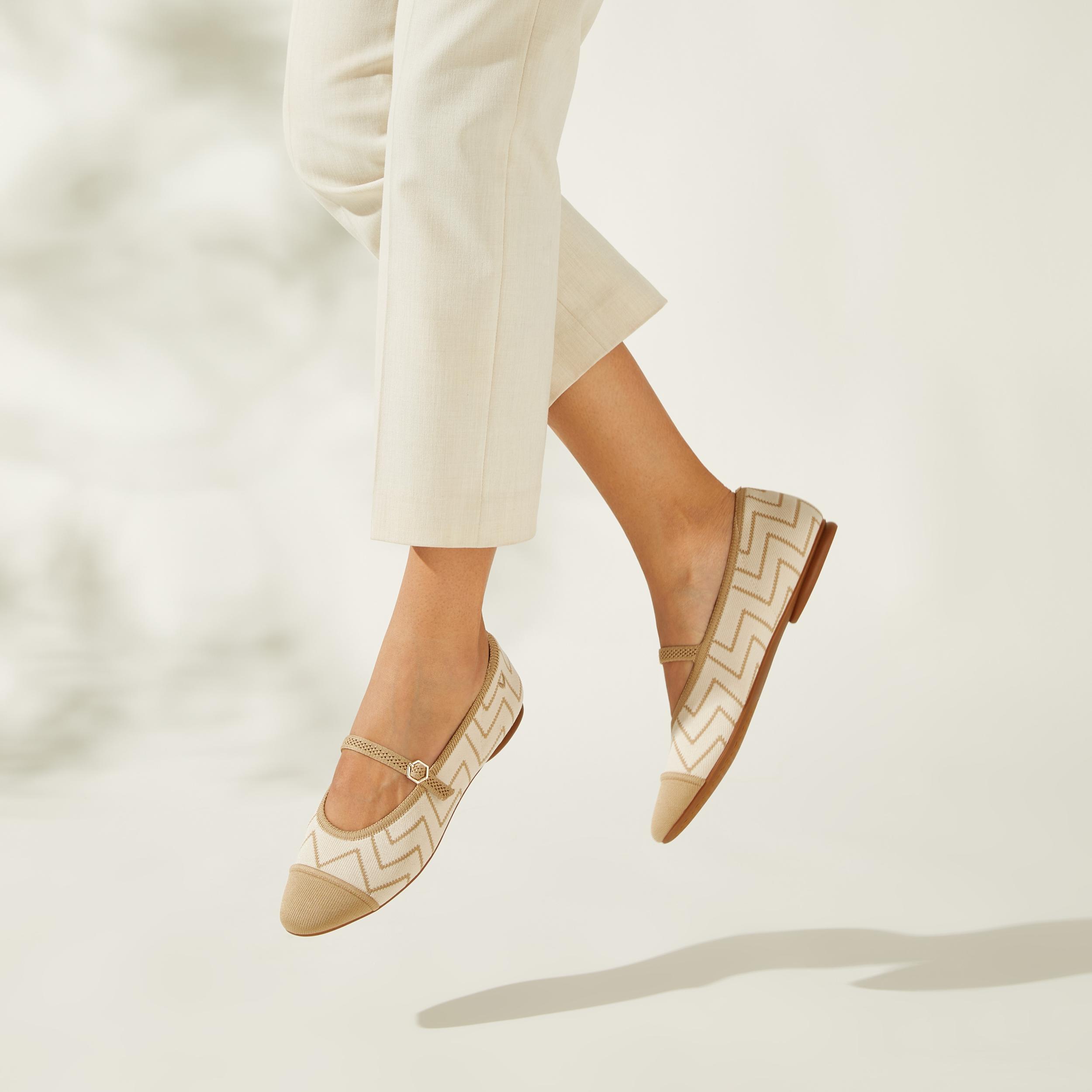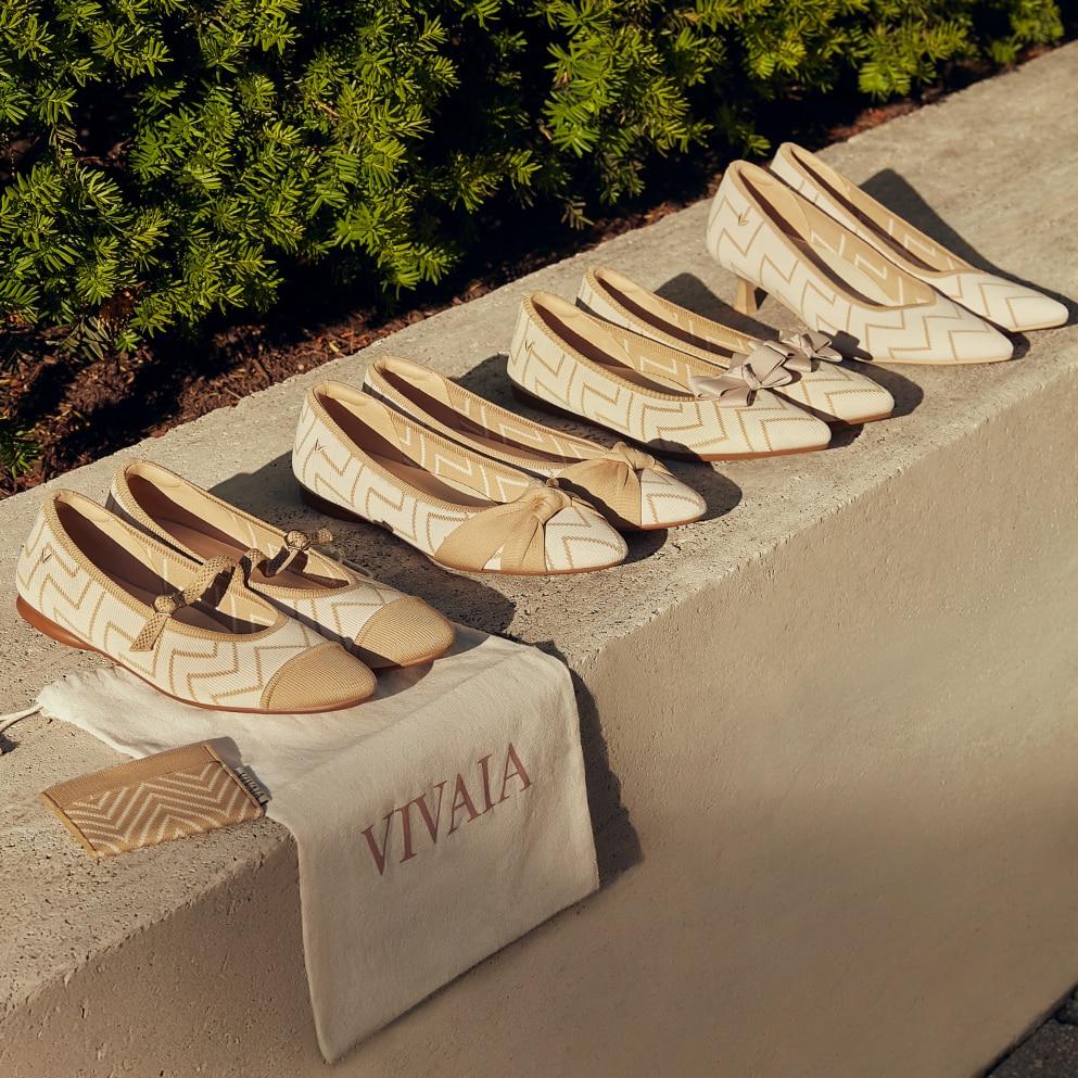 Celebrate 4 years of style and comfort with our Commemorative Special Edition Tamia Mary-Janes with AdaptAll Strap™ featuring VIVAIA’s iconic V-Print pattern—the epitome of quiet luxury.