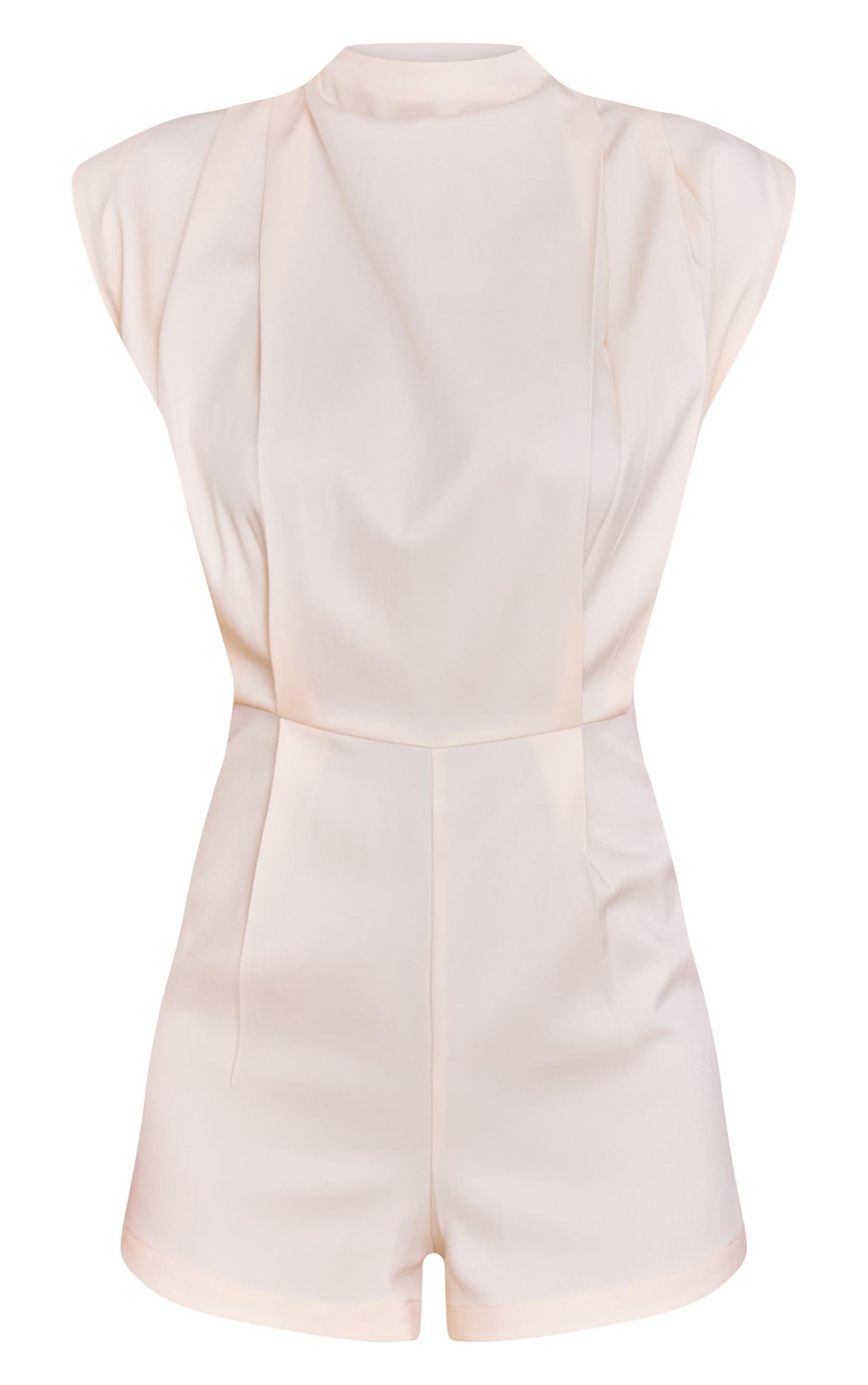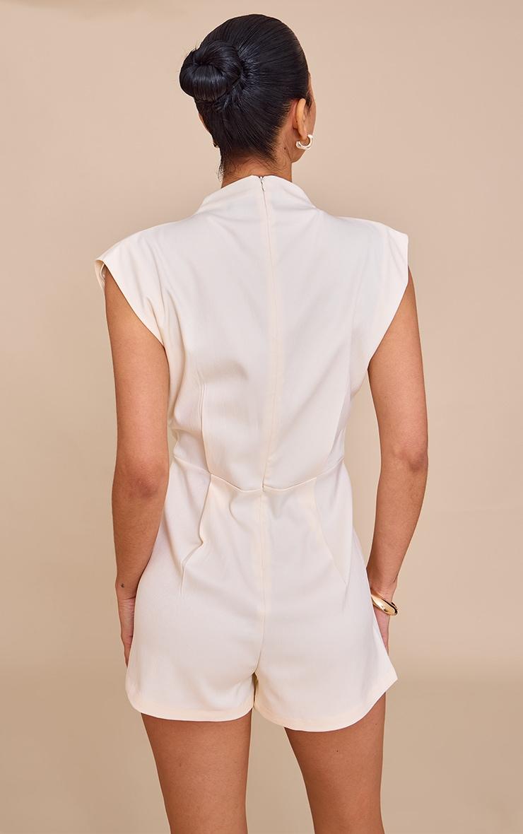 Make an entrance with considered structure. The almond woven bagged over boat neck romper is crafted for confident evening moments. Its clean boat neckline leads to a unique gathered detail creating that signature baggy effect across the structured shoulders. The tailored waist defines the form, transitioning into sharp, short bottoms. This woven design ensures a defined shape that lasts. Style it with striking gold accessories and sharp heeled sandals for an undeniable finish.Length approx 81.5cm/32inch (Based on sample size US 4)Model wears size UK 8/ EU 36/ AUS 8/ US 4Model Height - 5ft 9inchp]:!mb-4inch>Brand: PrettyLittleThingCategory: Jumpsuits & PlaysuitsProduct type: Tailored PlaysuitColor: AlmondMaterial: Tailored WovenNeckline: Boat NeckSleeves: SleevelessOccasion: Evening