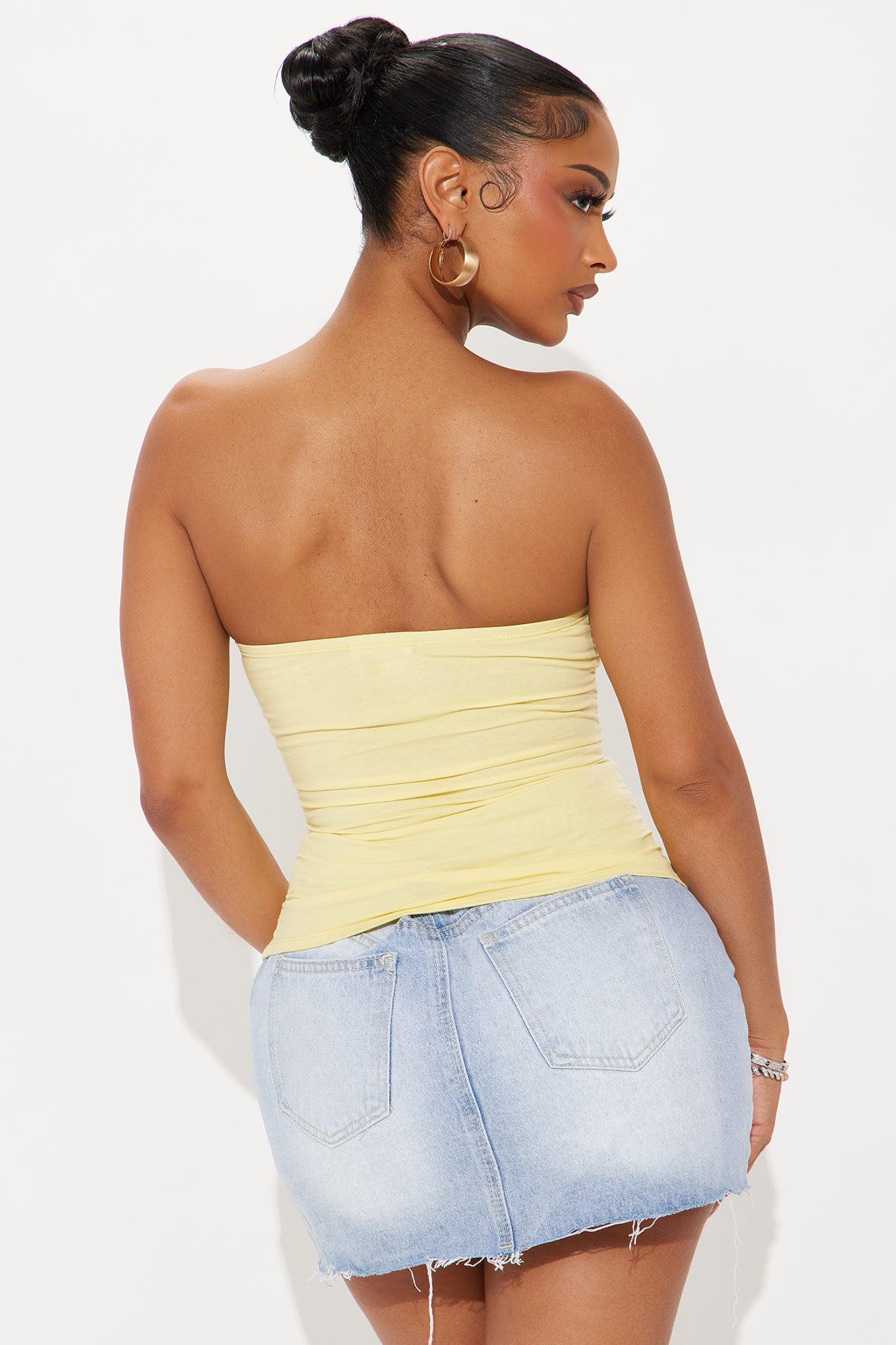 Available In Yellow. Straight Neck Strapless Front Screen Stretch Disclaimer: Due To The Printing Process A Difference In Saturation May Occur. Each Garment Is Unique. Shell: 95% Cotton 5% Spandex Lining: 95% Cotton 5% Spandex Imported