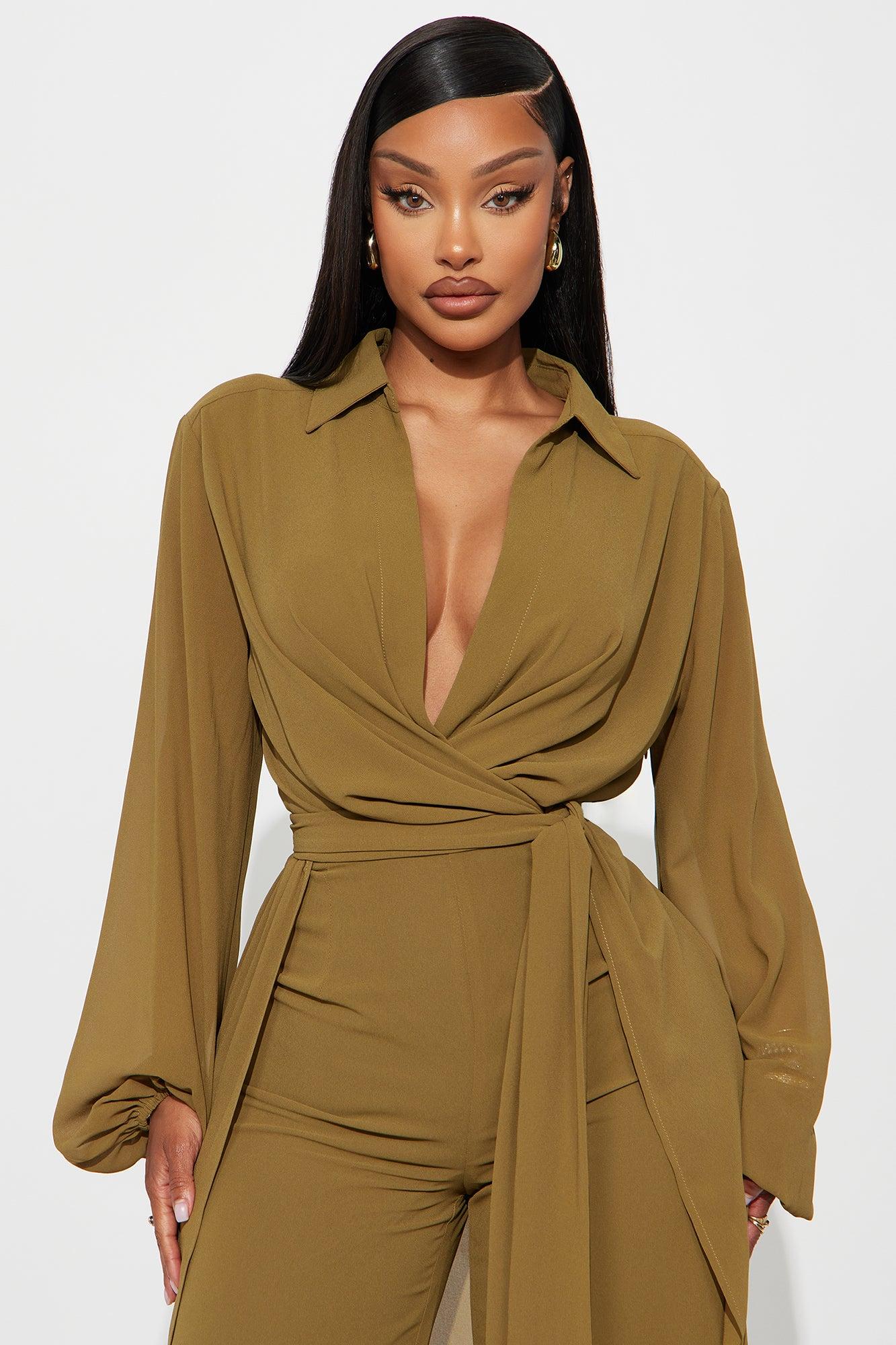 Alondra Chiffon Long Sleeve Jumpsuit - Olive Female