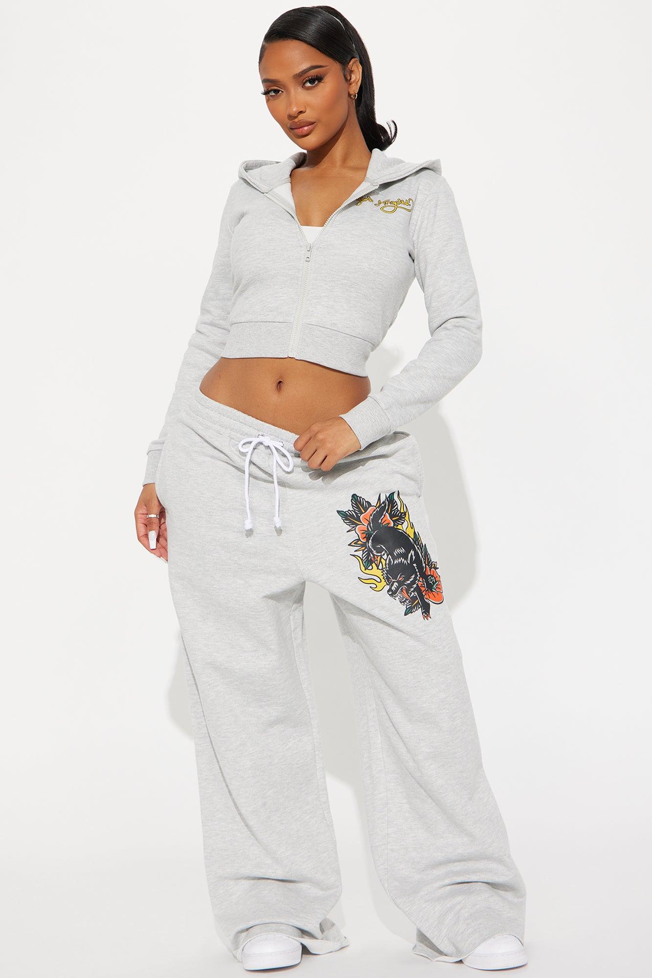 Available In Heather Grey. Hooded Front And Back Screen Long Sleeve Zip Front Cropped Paid Back To "Alpha Energy Wide Leg Pants" Disclaimer: Due To The Screen Printing Process A Difference In Saturation May Occur. Each Garment Is Unique. 60% Cotton 40% Polyester Imported