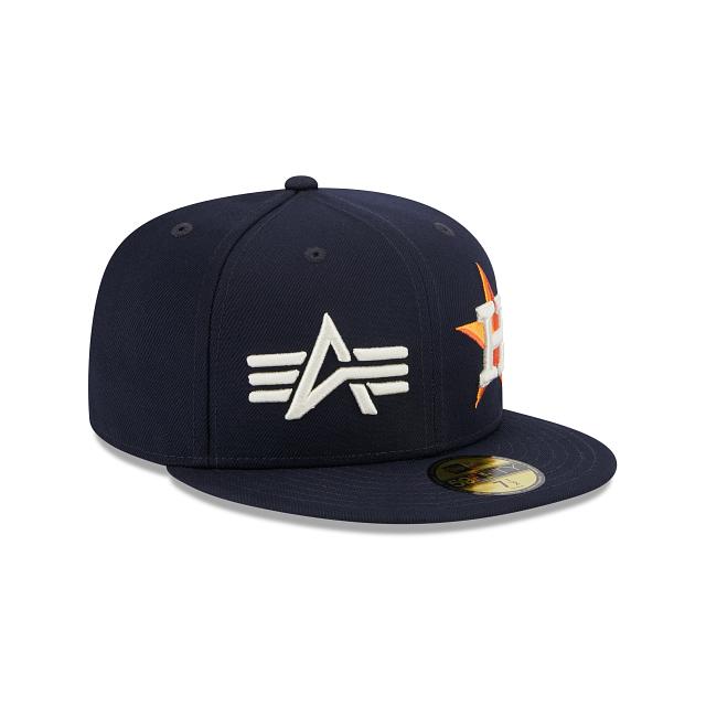 The Alpha Industries X Chicago Cubs Dual Logo 59FIFTY Fitted Cap features embroidered Alpha Industries and Cubs logos at the front panels with a matching MLB Batterman at the rear. Additional details include an Alpha Industries ribbon at the left-wear side and a gray undervisor.
