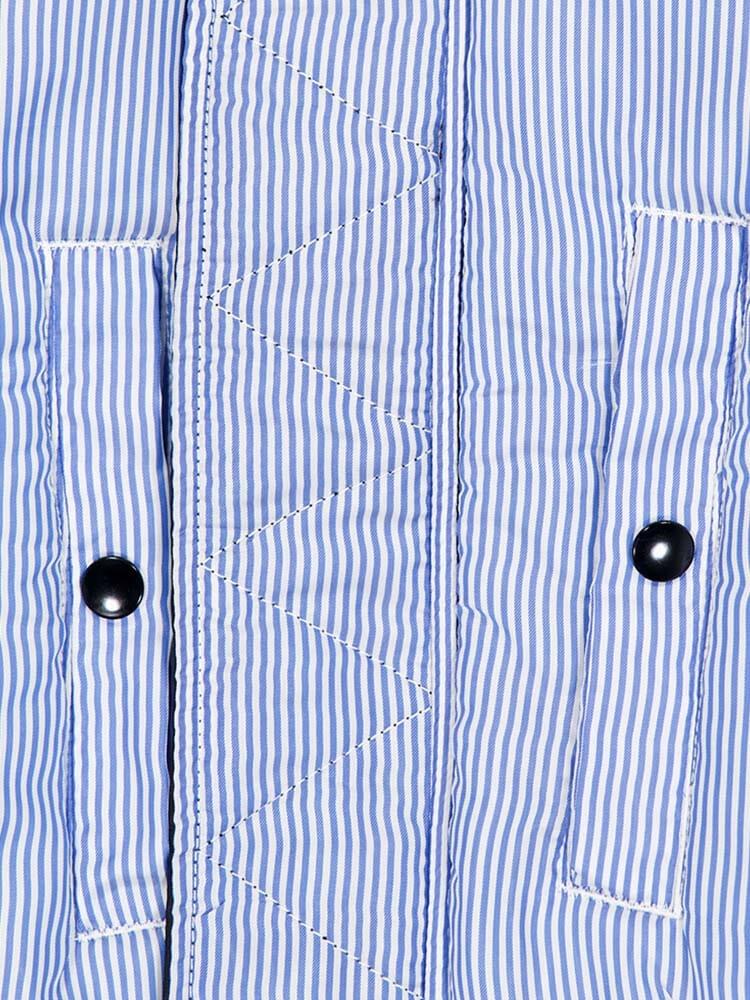 Introducing ALPHA X UNDERCOVER - a collaboration of Undercover's innovative and daring aesthetic paired with Alpha's commitment to functionality. FEATURES Full-zip front closure Reversible inside striped print Ribbed collar, sleeve cuffs, hem Pockets with flap and snap button closure Pocket with zipper closure on the left sleeve Interior pockets with snap button closure Leather stitching, patch branding and graphic print to the left sleeve Woven label neck tag
