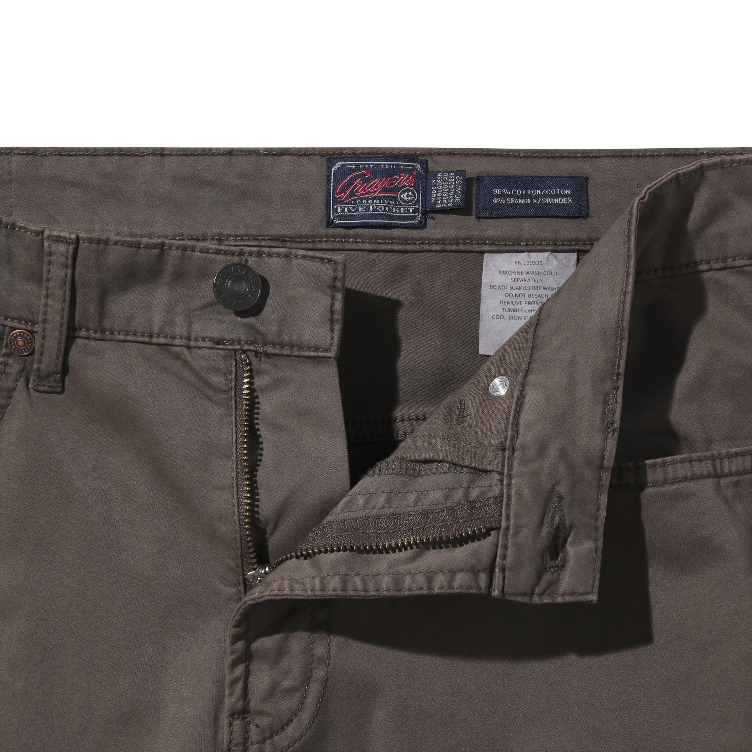The buy me now, thank me later of pants. Engineering the best quality pieces to fill a gap in your wardrobe is important to us. That's why we created the Alternative 5-Pocket pant. It's just right for all those days when denim won't do the trick, and chinos aren't quite laidback enough. This comfort-driven pant yields stretch and an incredibly soft hand. We should all have a pair of pants in our closets that we never want to take off, even if the day is a long one. And, they're equally as durable with a sturdy, mid-weight sateen twill, a versatile base cloth that's ideal for year-round wear. The Model is also wearing: New Windsor Double Cloth Crew - Oatmeal Heather Model: Ken is wearing size medium and is 6'1". ----Details---- Slim Fit 5 Pocket Straight leg Rivet reinforced Rear leather patch Signature Grayers hardware YKK Zipper 96% Cotton/4% Spandex sateen twill Imported ----Materials---- YKK Zipper 96% Cotton/4% Spandex sateen twill Leather patch ----Size & Fit---- Measuring Method: All measurements are in inches and based on a “flat” garment, as shown below. For comparison with one of your existing garments, please lay garment on a flat surface and follow the key measurement points. Slim fit, tampered at the thighs and legs ----Care---- Machine Wash Cold Separately Do Not Soak Before Washing Do Not Bleach Remove Promptly Tumble Dry Low Cool Iron if Necessary