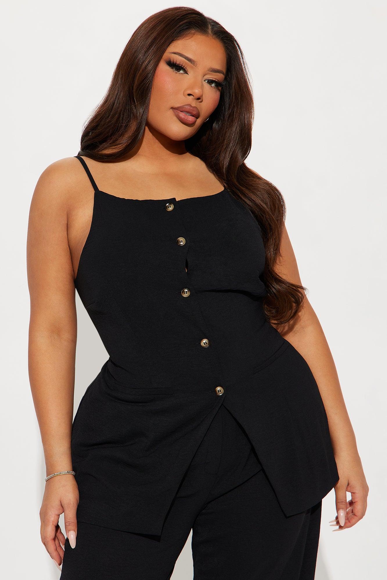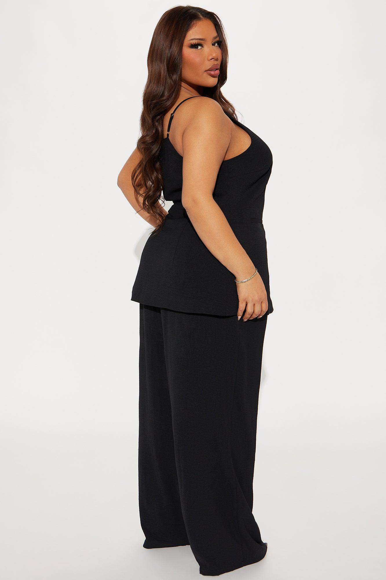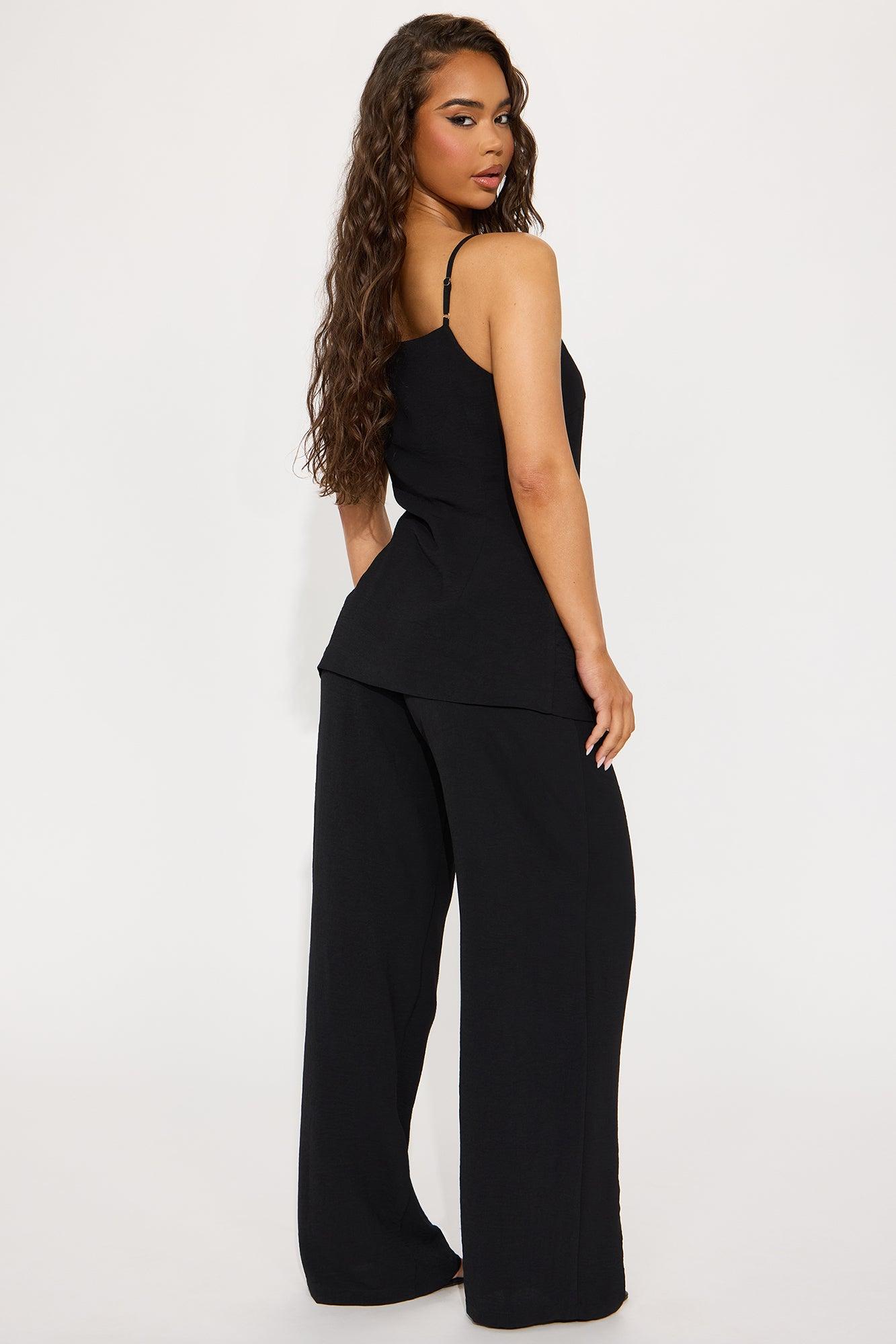 Available In Black, Slate Blue And Taupe. Sleeveless Top and Pant Set Stretch Regular 33" Inseam Front Zip Closure Pockets Shell : 100% Polyester Lining : 100% Cotton Imported