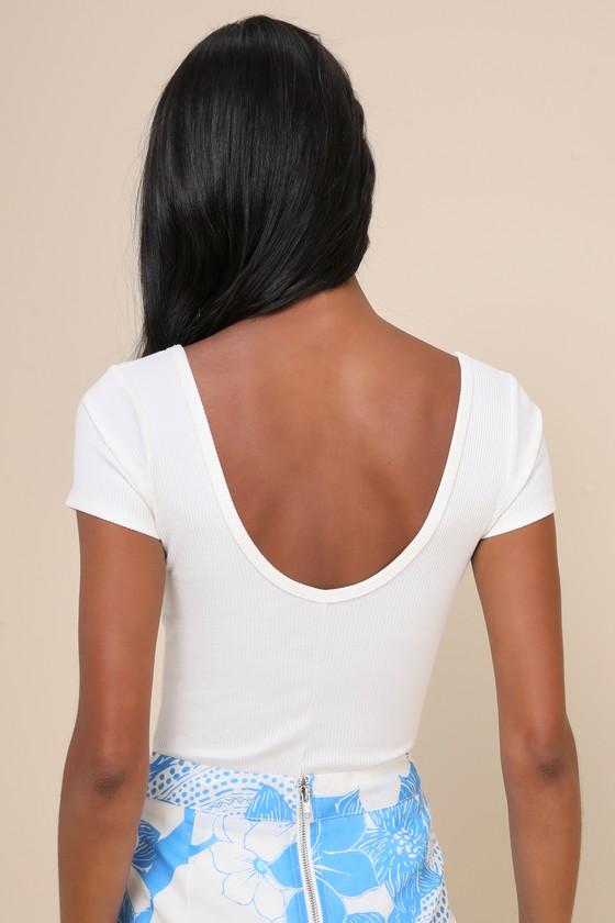 Nothing can hold you back when you're wearing the Lulus Always Confident Ivory Ribbed Square Neck Short Sleeve Bodysuit! Stretchy ribbed knit fabric shapes short sleeves that frame a square neckline and a scoop back. The fitted silhouette falls to attached thong bottoms with snap closures. Pair this bodysuit with high-waisted bottoms for a casual but fierce look!