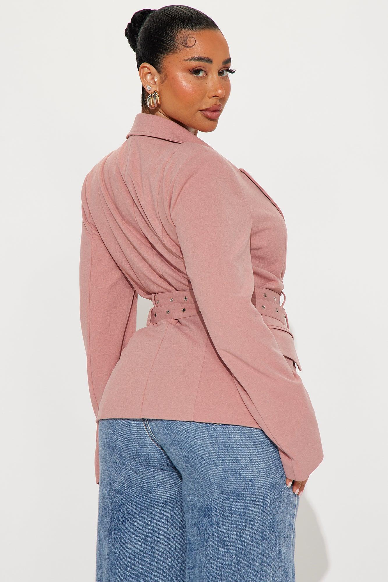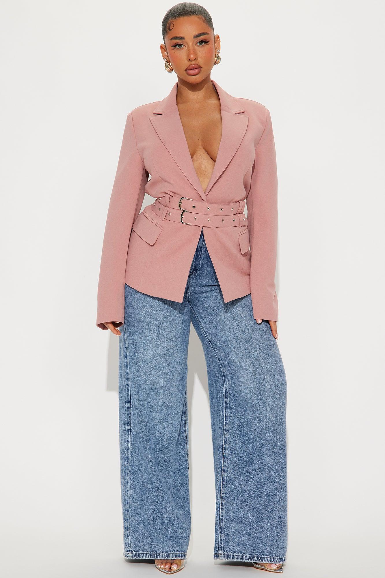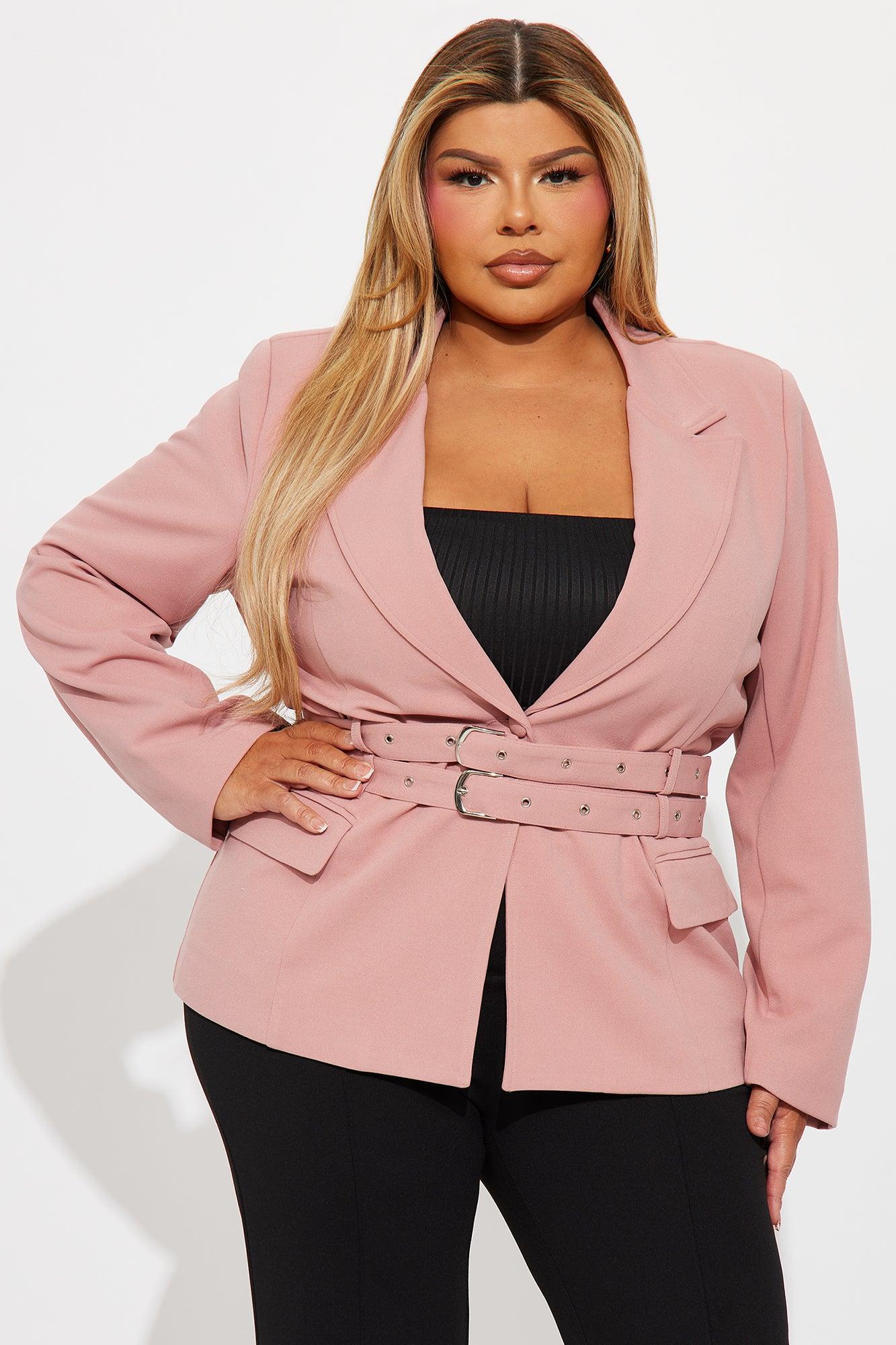 Available In Black And Red. Blazer Lapel Collar Long Sleeve Crepe Knit Belted Button Closure Pockets Fully Lined Self: 95% Polyester 5% Spandex Lining: 100% Polyester Imported California Proposition 65 WARNING: Cancer and Reproductive Harm - www.P65Warnings.ca.gov.