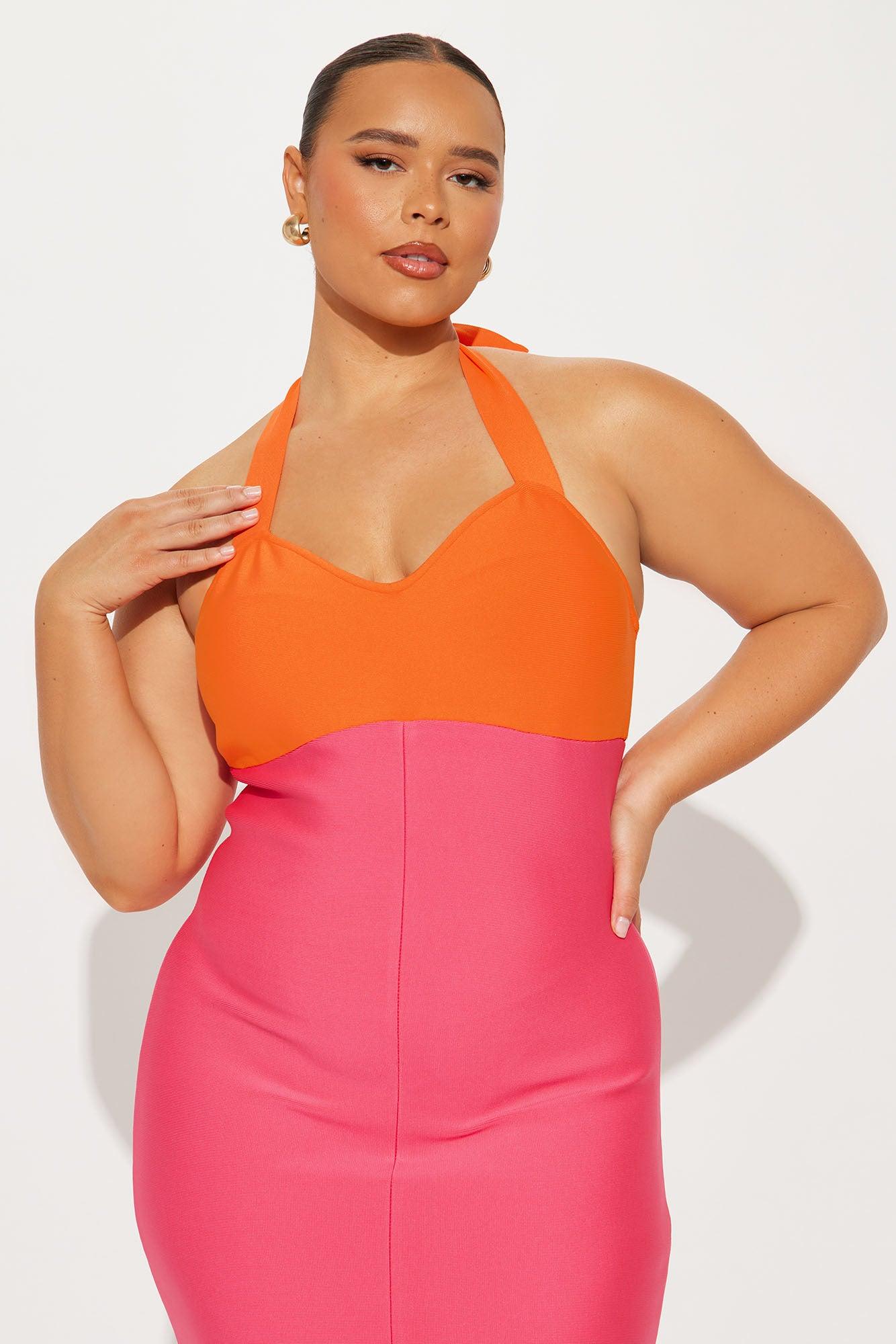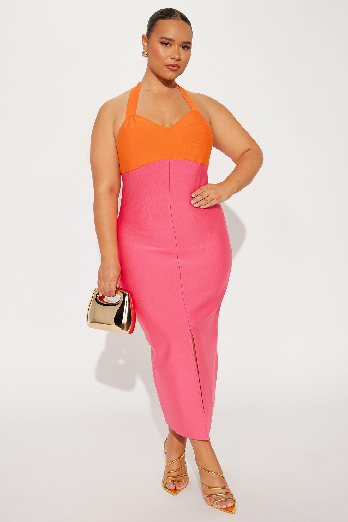 Always Winning Bandage Midi Dress - Pink/combo