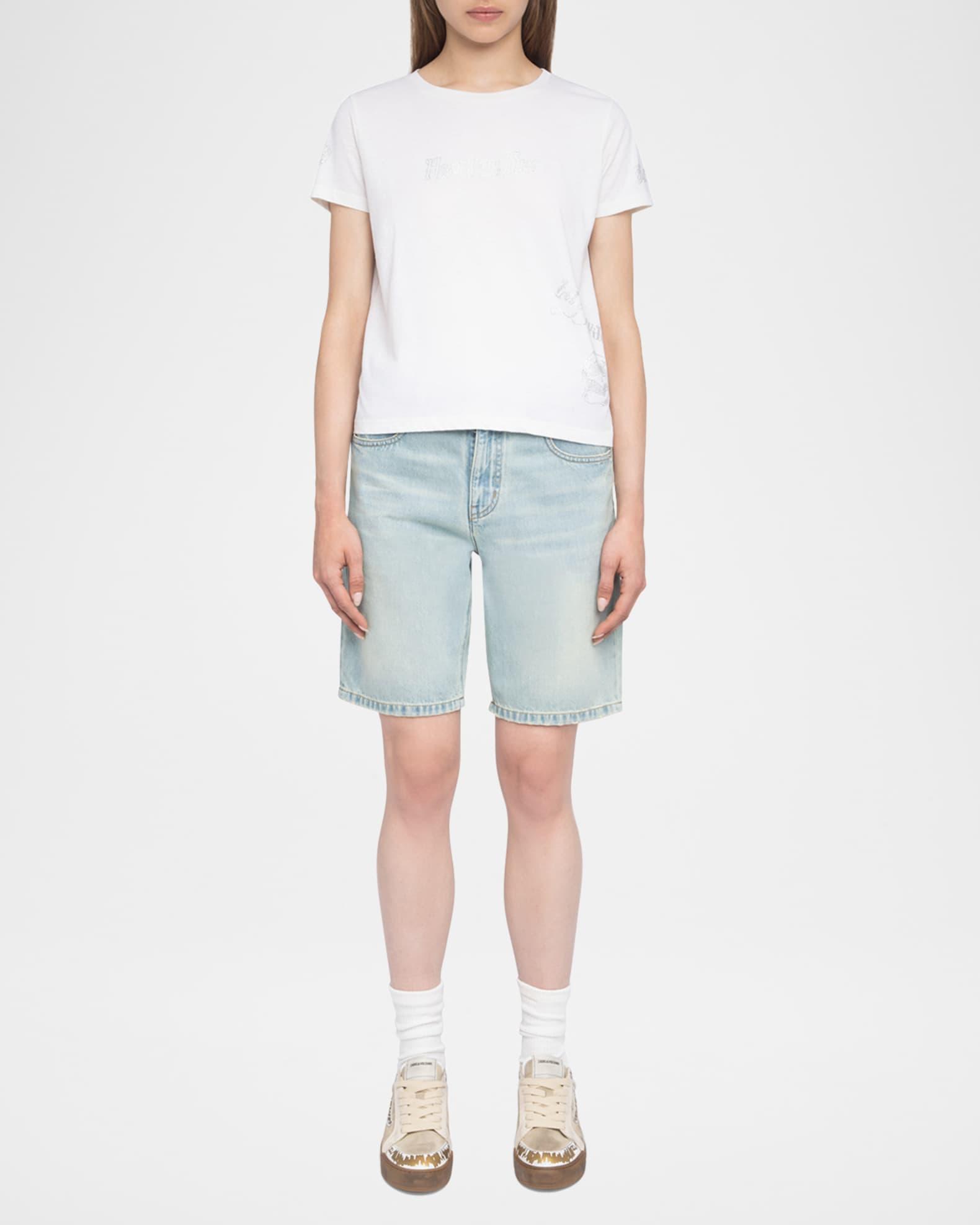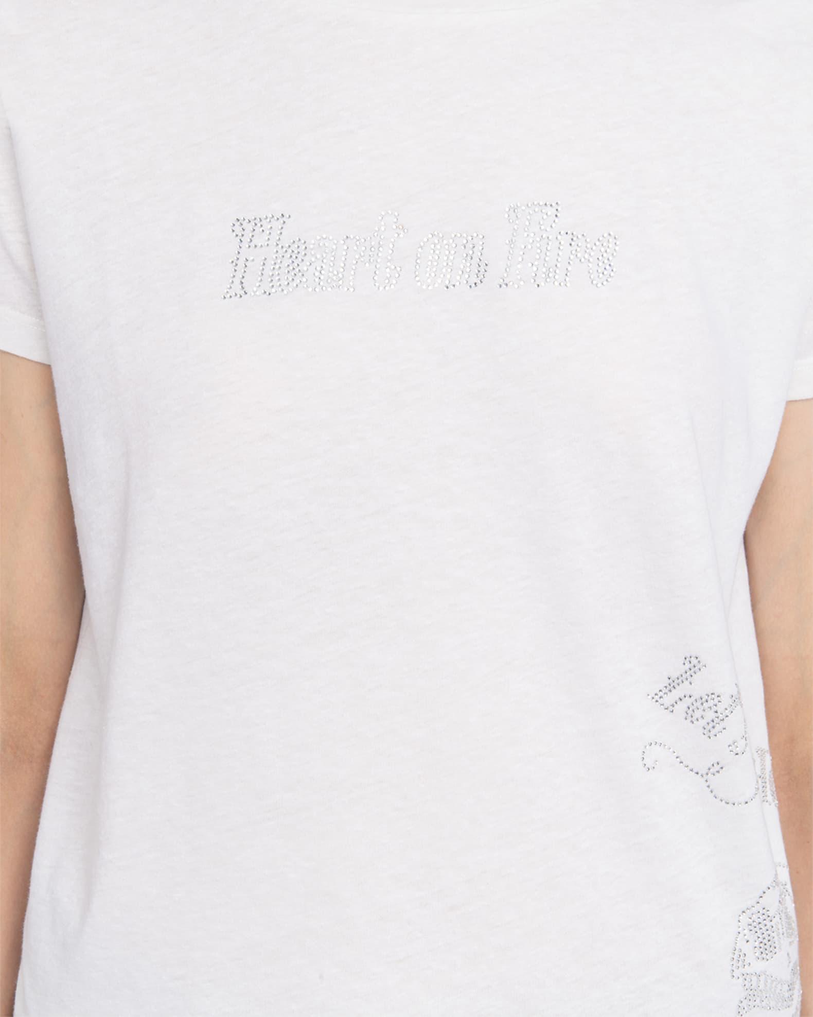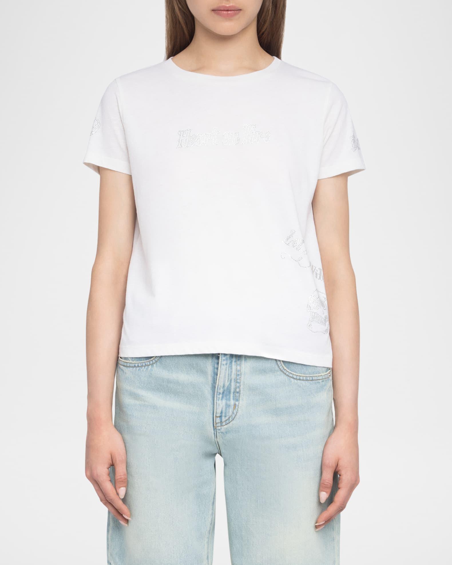 Zadig & Voltaire "Alys" t-shirt features multi rhinestone-embellished graphics Crew neckline Short sleeves Relaxed fit Hip length Pullover style Polyester/cotton/linen Machine wash cold, line dry Imported