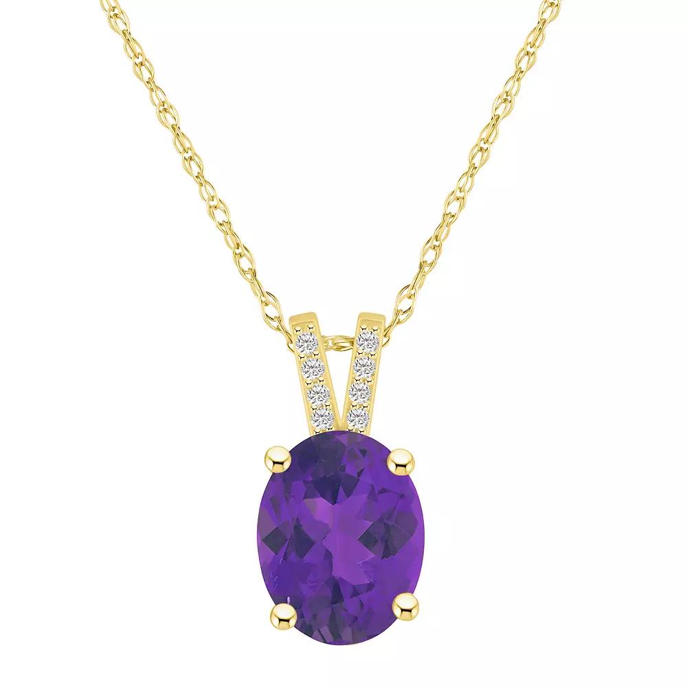 Enhance your look with this Alyson Layne 10k Gold Oval Gemstone Diamond Accent Pendant Necklace. Click on this JEWELRY & WATCHES GUIDE to learn about fit, styles, materials and more! Enhance your look with this Alyson Layne 10k Gold Oval Gemstone Diamond Accent Pendant Necklace. Click on this JEWELRY & WATCHES GUIDE to learn about fit, styles, materials and more! FEATURES Pendant size: 5/8L x 1/3W Chain length: 18 in. Chain type: rope Clasp: spring-ring Nickel free Metal: 10k gold Finish: polished Packaging: boxedSTONE DETAILS Stone type: garnet, Swiss blue topaz, amethyst, London blue topaz, citrine, onyx Total weight: 3 1/6 ct., 3 5/8 ct., 2 1/2 ct., 2 1/3 ct. Center stone weight: 2 1/4 ct., 3 1/10 ct., 2 1/2 ct., 3 5/8 ct. Center stone size: 10 mm x 8 mm Shape: pear, round brilliant Setting: prongDIAMOND DETAILS Total weight: less than 1/10 ct. Color grade: I-J Clarity: I2 Shape: round brilliant Setting: prong Diamond weights are approximate. Diamond Total Weights may vary between .01 and .13 ct. Some diamonds consist of fewer than 17 facets. Gemstones may have been treated to enhance their appearance. Special care may be required. Please visit our Gemstone Treatment & Special Care Guide for more information. Image(s) may be enlarged to show detail. Size: 18. Gender: female. Age Group: adult.