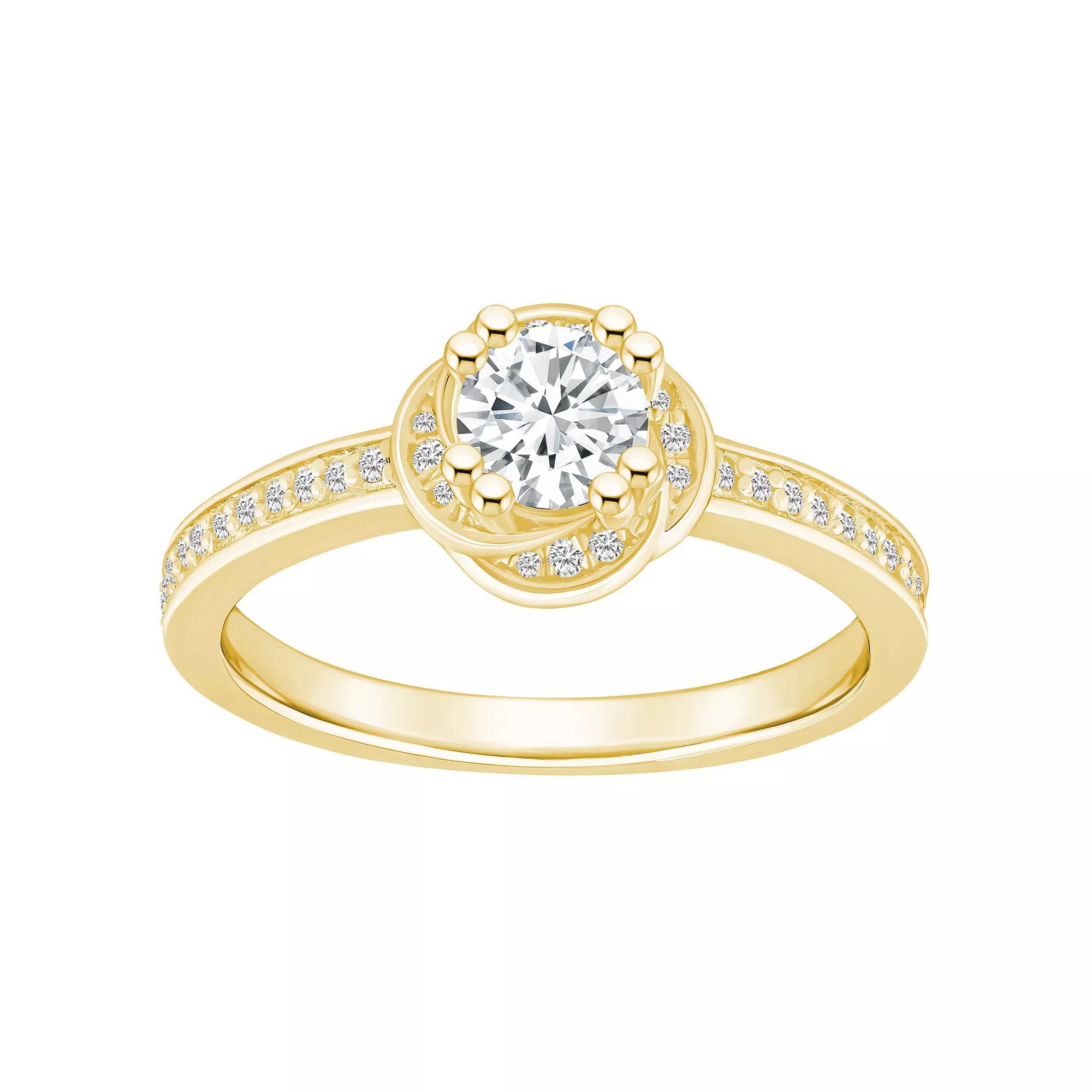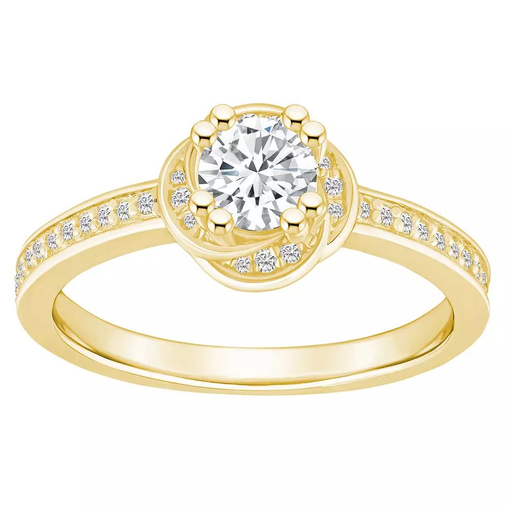 Featuring a sweet rosette silhouette and 14k gold construction, this Alyson Layne diamond engagement ring is the perfect way to say "I love you." Featuring a sweet rosette silhouette and 14k gold construction, this Alyson Layne diamond engagement ring is the perfect way to say "I love you." Width: 3/8 in. Nickel free Metal: 14k gold Finish: polished Packaging: boxedDIAMOND DETAILS Total weight: 3/4 ct. Center stone weight: 1/2 ct. Color grade: H, I Clarity grade: I2, I3 Shape: round Setting: prong Diamond weights are approximate. Diamond Total Weights may vary between .01 and .13 ct. Some diamonds consist of fewer than 17 facets. Image(s) may be enlarged to show detail. Please note, due to the high value of this item, a signature may be required upon delivery. Size: 5. Color: Yellow. Gender: female. Age Group: adult.