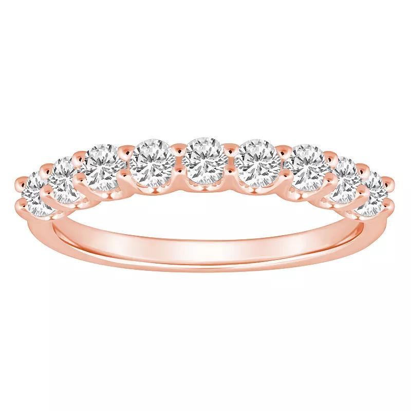 Display your devotion every day with this 14k gold Alyson Layne diamond-studded wedding band. Display your devotion every day with this 14k gold Alyson Layne diamond-studded wedding band. Width: 1/6 in. Nickel free Metal: 14k gold Plating: rhodium Finish: polished Packaging: boxedDIAMOND DETAILS Total weight: 9/10 ct. Color grade: H, I Clarity grade: I1, I2 Shape: round Setting: prong Diamond weights are approximate. Diamond Total Weights may vary between .01 and .13 ct. Some diamonds consist of fewer than 17 facets. Gemstones may have been treated to enhance their appearance. Special care may be required. Please visit our Gemstone Treatment & Special Care Guide for more information. Image(s) may be enlarged to show detail. Please note, due to the high value of this item, a signature may be required upon delivery. Color: Pink. Gender: female. Age Group: adult.