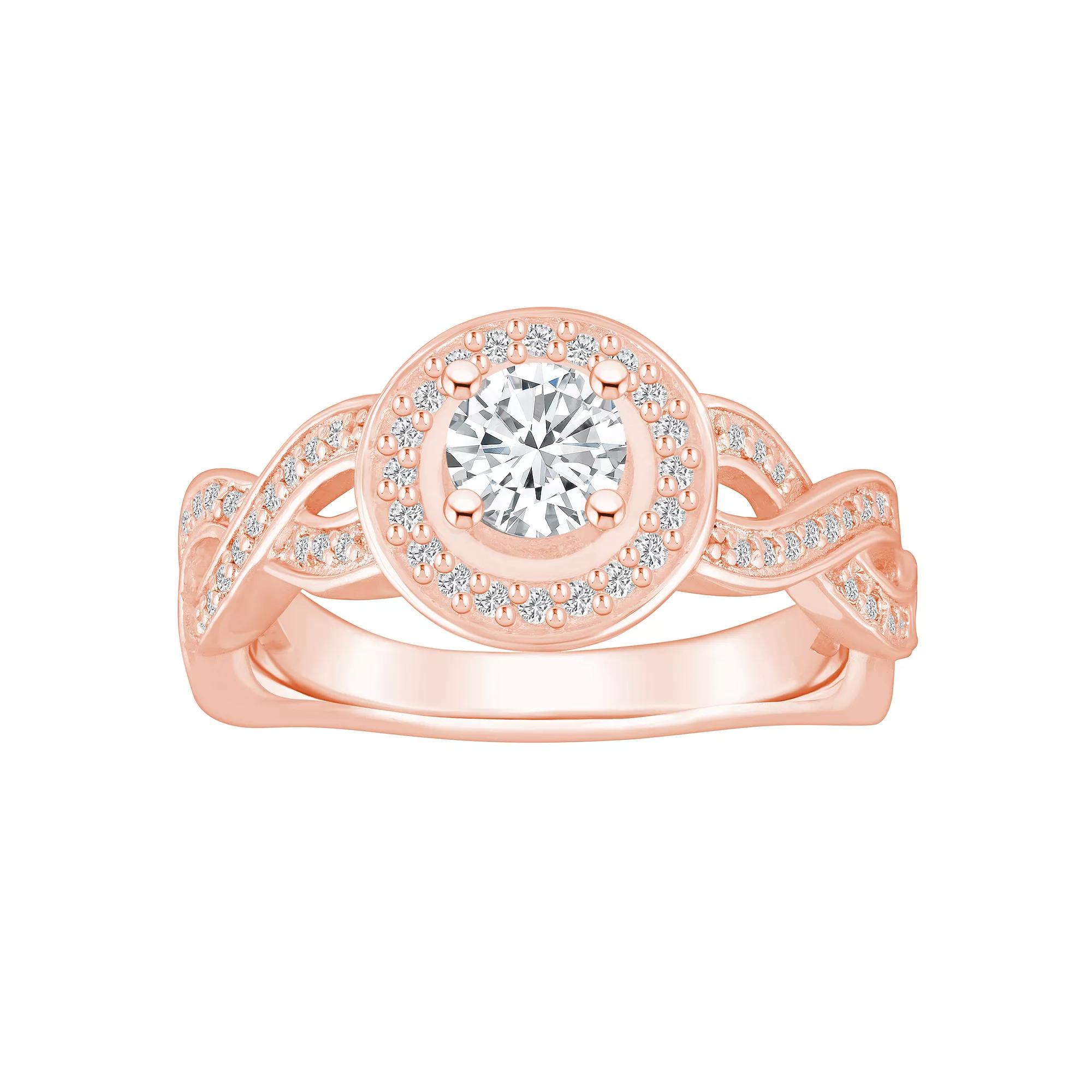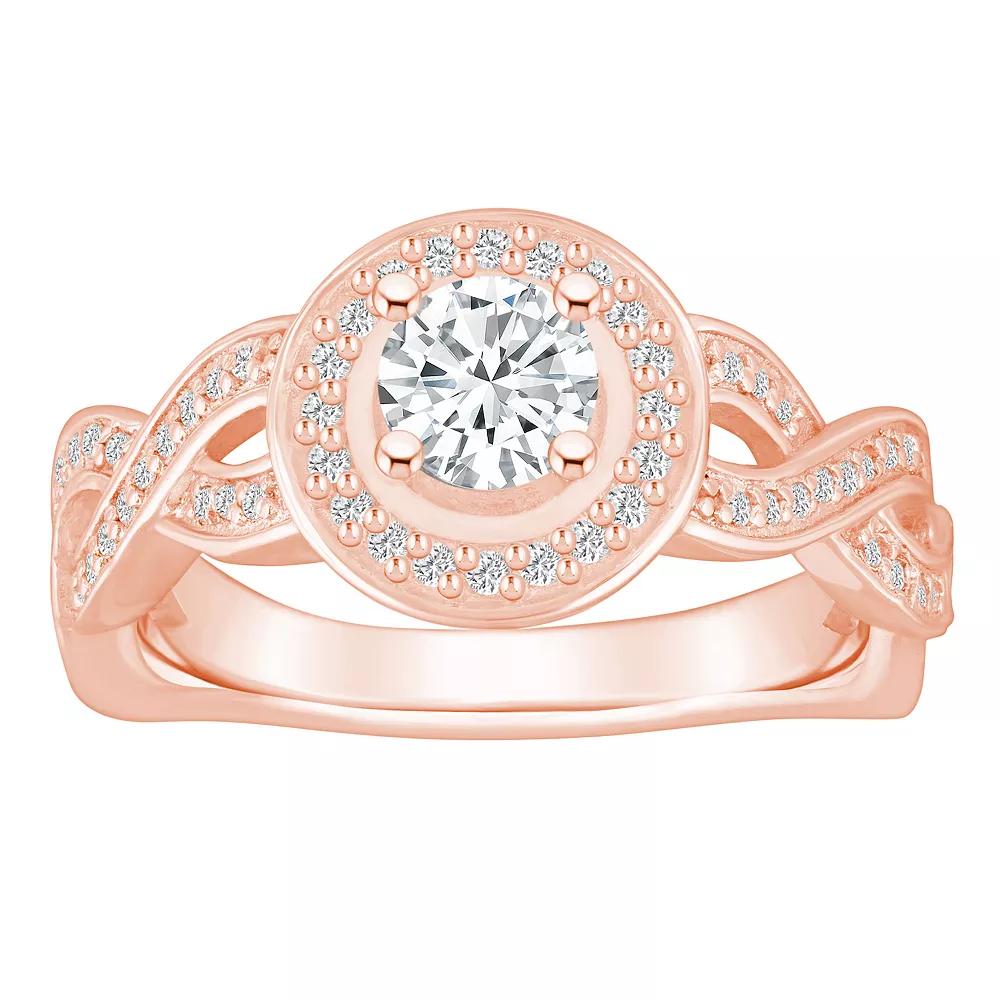 With its unique braided construction, this eye-catching 14k rose gold Alyson Layne diamond engagement ring is the perfect way to display your undying love. With its unique braided construction, this eye-catching 14k rose gold Alyson Layne diamond engagement ring is the perfect way to display your undying love. Width: 3/8 in. Nickel free Metal: 14k rose gold Finish: polished Packaging: boxedDIAMOND DETAILS Total weight: 9/10 ct. Center stone weight: 1/2 ct. Clarity grade: I2, I3 Color grade: H, I Shape: round Setting: prong Diamond weights are approximate. Diamond Total Weights may vary between .01 and .13 ct. Some diamonds consist of fewer than 17 facets. Image(s) may be enlarged to show detail. Please note, due to the high value of this item, a signature may be required upon delivery. Color: Pink. Gender: female. Age Group: adult.