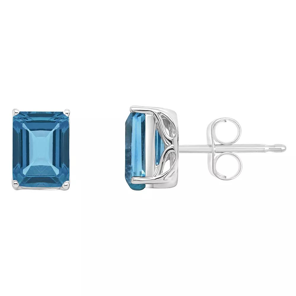 Alyson Layne 14k Gold Emerald Cut London Blue Topaz Stud Earrings, Women's, 14k White Gold Product Image