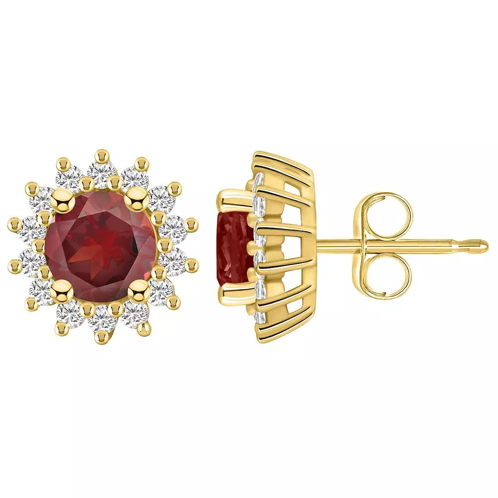 With beautiful round garnet and genuine diamond halo, these Alyson Layne 14k gold stud earrings are an elegant accessory for every occasion. With beautiful round garnet and genuine diamond halo, these Alyson Layne 14k gold stud earrings are an elegant accessory for every occasion. Nickel free Metal: 14k gold Backings: post Packaging: boxed Finish: polished Diameter: 0.44 in.STONE DETAILS Stone type: garnet Total weight: 2 3/4 ct. Stone size: 6 mm Shape: round Setting: prongDIAMOND DETAILS Total weight: 1/2 ct. Color grade: I-J Clarity: 12 Shape: round brilliant Setting: prong Diamond weights are approximate. Diamond Total Weights may vary between .01 and .13 ct. Some diamonds consist of fewer than 17 facets. Gemstones may have been treated to enhance their appearance. Special care may be required. Please visit our Gemstone Treatment & Special Care Guide for more information. Image(s) may be enlarged to show detail. Please note, due to the high value of this item, a signature may be required upon delivery. Gender: female. Age Group: adult.