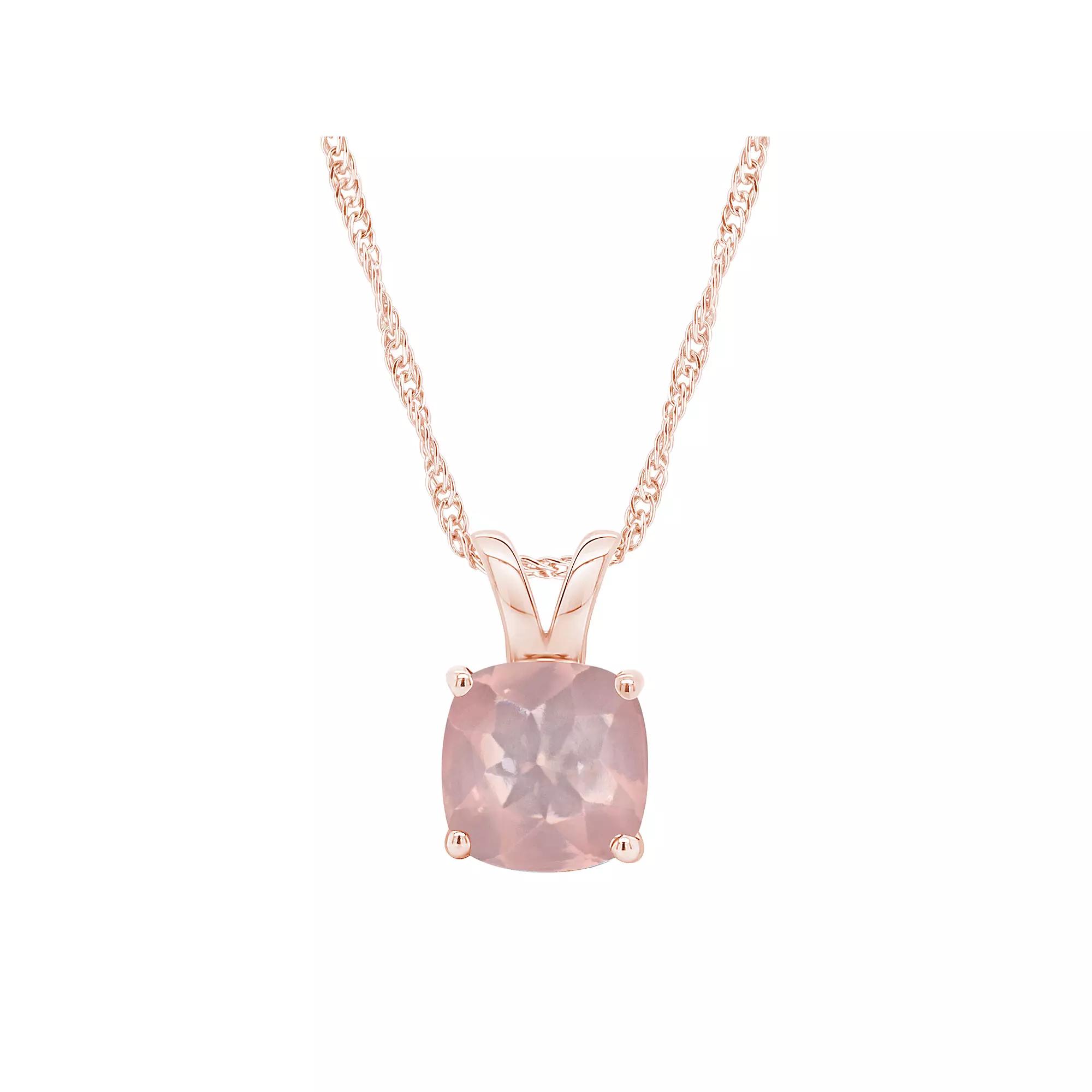 Enhance your look with this Alyson Layne 14k Rose Gold Over Silver Cushion Rose Quartz Pendant Necklace. Click on this JEWELRY & WATCHES GUIDE to learn about fit, styles, materials and more! Enhance your look with this Alyson Layne 14k Rose Gold Over Silver Cushion Rose Quartz Pendant Necklace. Click on this JEWELRY & WATCHES GUIDE to learn about fit, styles, materials and more! FEATURES Pendant size: 0.52L x 0.32W Chain length: 18 in. Chain type: Singapore Clasp: lobster-claw Nickel free Metal: sterling silver Plating: 14k rose gold Finish: polished Packaging: boxed ImportedSTONE DETAILS Stone type: rose quartz Total weight: 2 1/10 ct. Center stone size: 8 mm Shape: cushion cut Setting: prong Gemstones may have been treated to enhance their appearance. Special care may be required. Please visit our Gemstone Treatment & Special Care Guide for more information. Size: 18. Color: Rose Tone. Gender: female. Age Group: adult. Material: Gold Over Sterling.