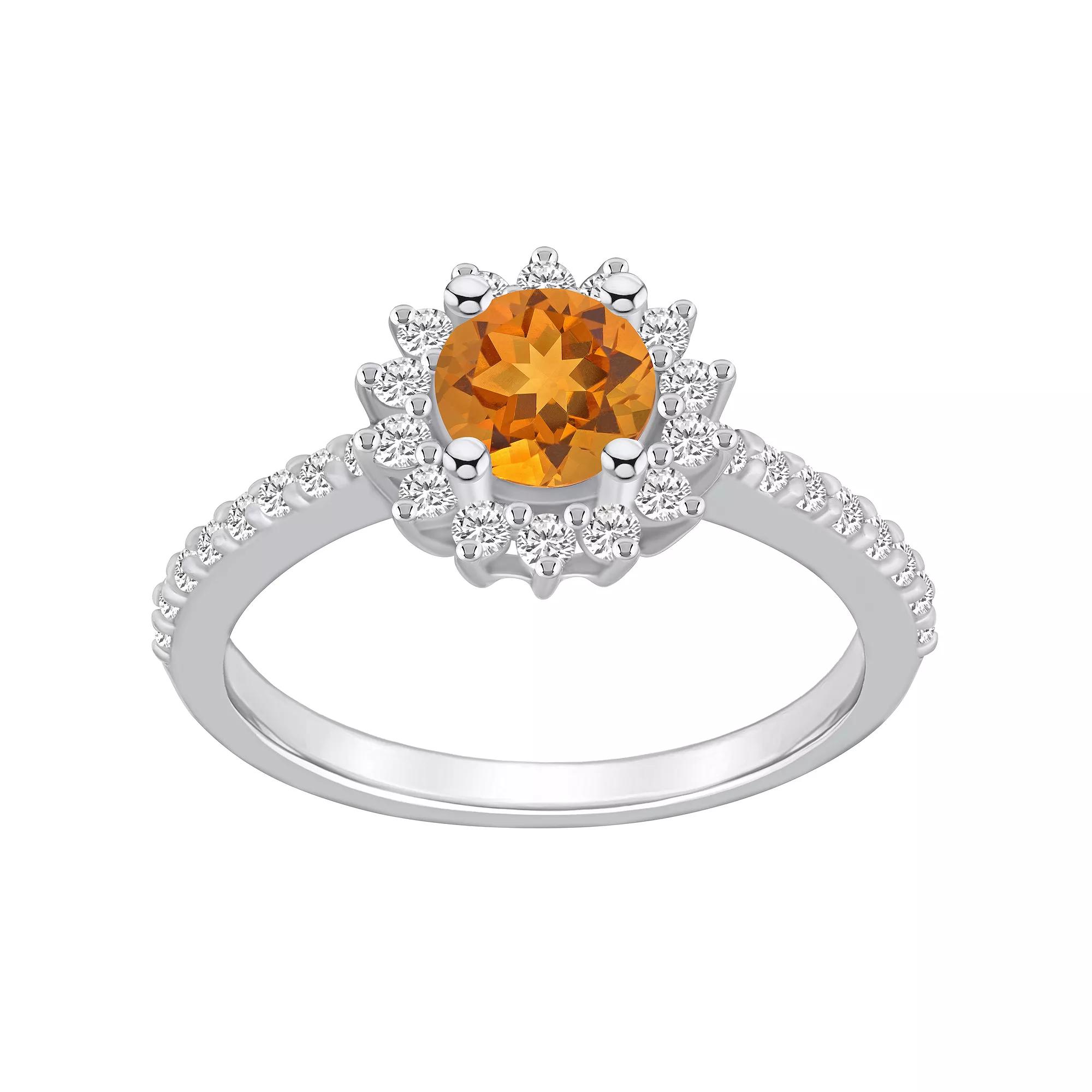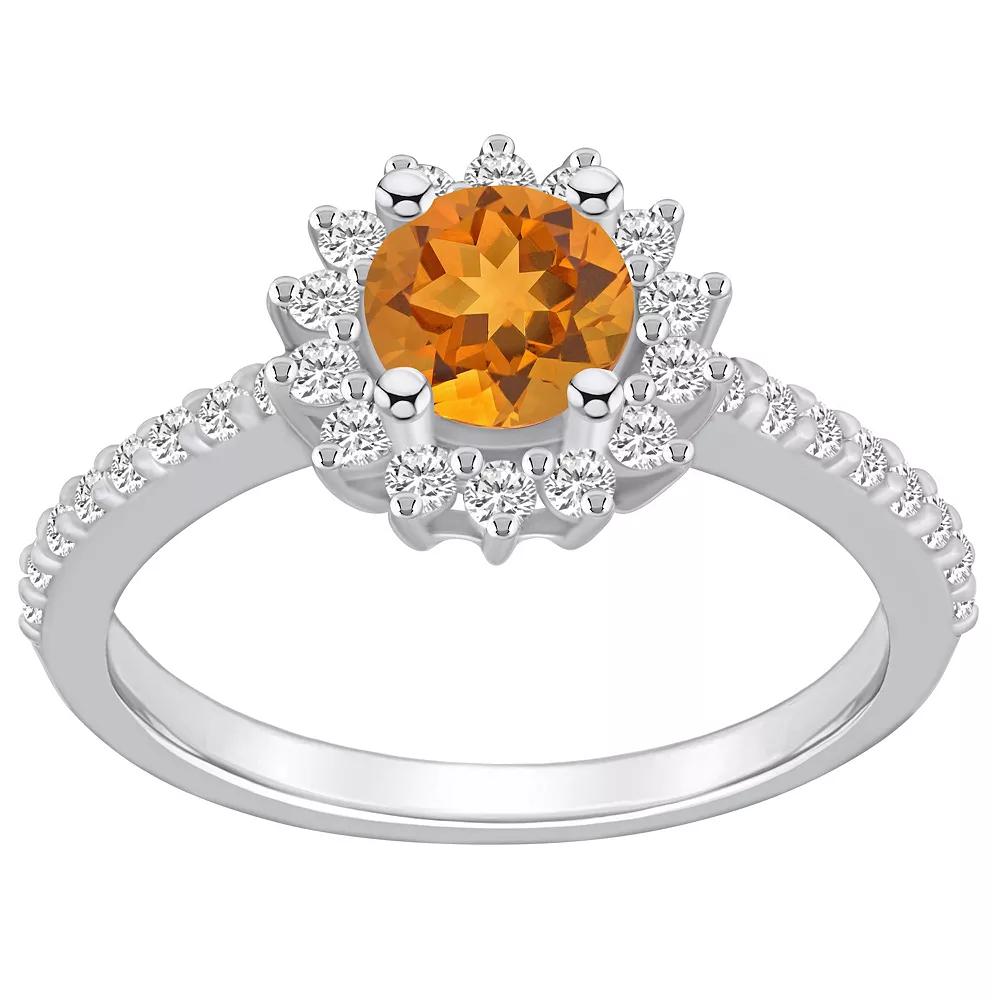 Featuring a round-cut citrine center stone wrapped in a crown of scintillating diamonds, this 14k white gold Alyson Layne ring accents your look beautifully. Featuring a round-cut citrine center stone wrapped in a crown of scintillating diamonds, this 14k white gold Alyson Layne ring accents your look beautifully. Metal: 14k white gold Packaging: boxed Plating: rhodium Width: 7/16 in. Finish: polishedSTONE DETAILS Stone type: citrine Total weight: 1 1/4 ct. Center stone weight: 3/4 ct. Center stone size: 6 mm Shape: round Setting: prongDIAMOND DETAILS Total weight: 1/2 ct. Shape: round brilliant Setting: prong Gemstones may have been treated to enhance their appearance. Special care may be required. Please visit our Gemstone Treatment & Special Care Guide for more information. Image(s) may be enlarged to show detail. Please note, due to the high value of this item, a signature may be required upon delivery. Color: Orange. Gender: female. Age Group: adult.