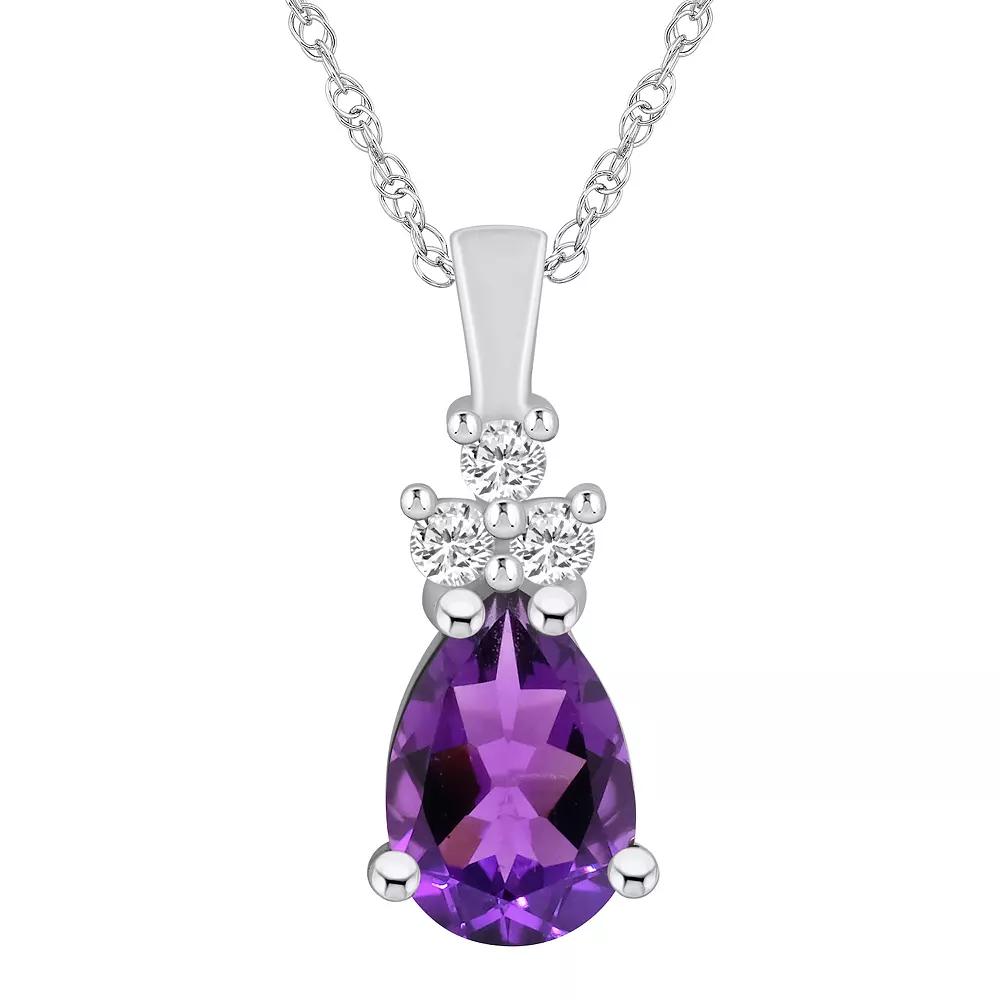 Alyson Layne 14k White Gold Pear Shape Amethyst & 1/6 Carat T.W. Diamond Pendant Necklace, Women's,  Product Image