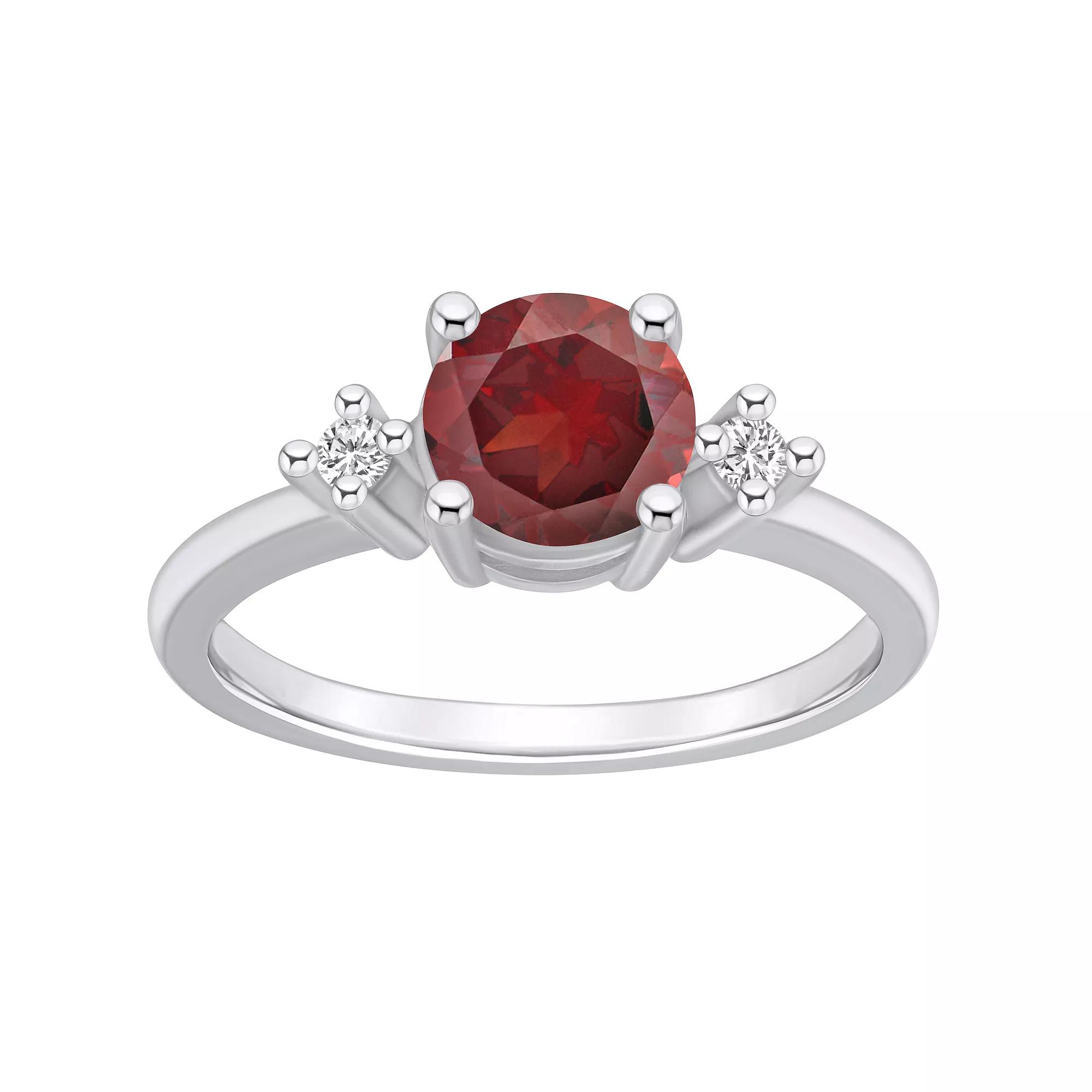 With shimmering garnet and genuine diamond accents, this 14k white gold Alyson Layne ring is an accessory youll love. With shimmering garnet and genuine diamond accents, this 14k white gold Alyson Layne ring is an accessory youll love. Metal: 14k white gold Packaging: boxed Plating: rhodium Width: 0.56 in. Finish: polishedSTONE DETAILS Stone type: garnet Total weight: 1 3/4 ct. Stone size: 7 mm Shape: round Setting: prongDIAMOND DETAILS Total weight: less than 1/10 ct. Color grade: I-J Clarity: 12 Shape: round brilliant Setting: prong Diamond weights are approximate. Diamond Total Weights may vary between .01 and .13 ct. Some diamonds consist of fewer than 17 facets. Gemstones may have been treated to enhance their appearance. Special care may be required. Please visit our Gemstone Treatment & Special Care Guide for more information. Image(s) may be enlarged to show detail. Please note, due to the high value of this item, a signature may be required upon delivery. Gender: female. Age Group: adult.