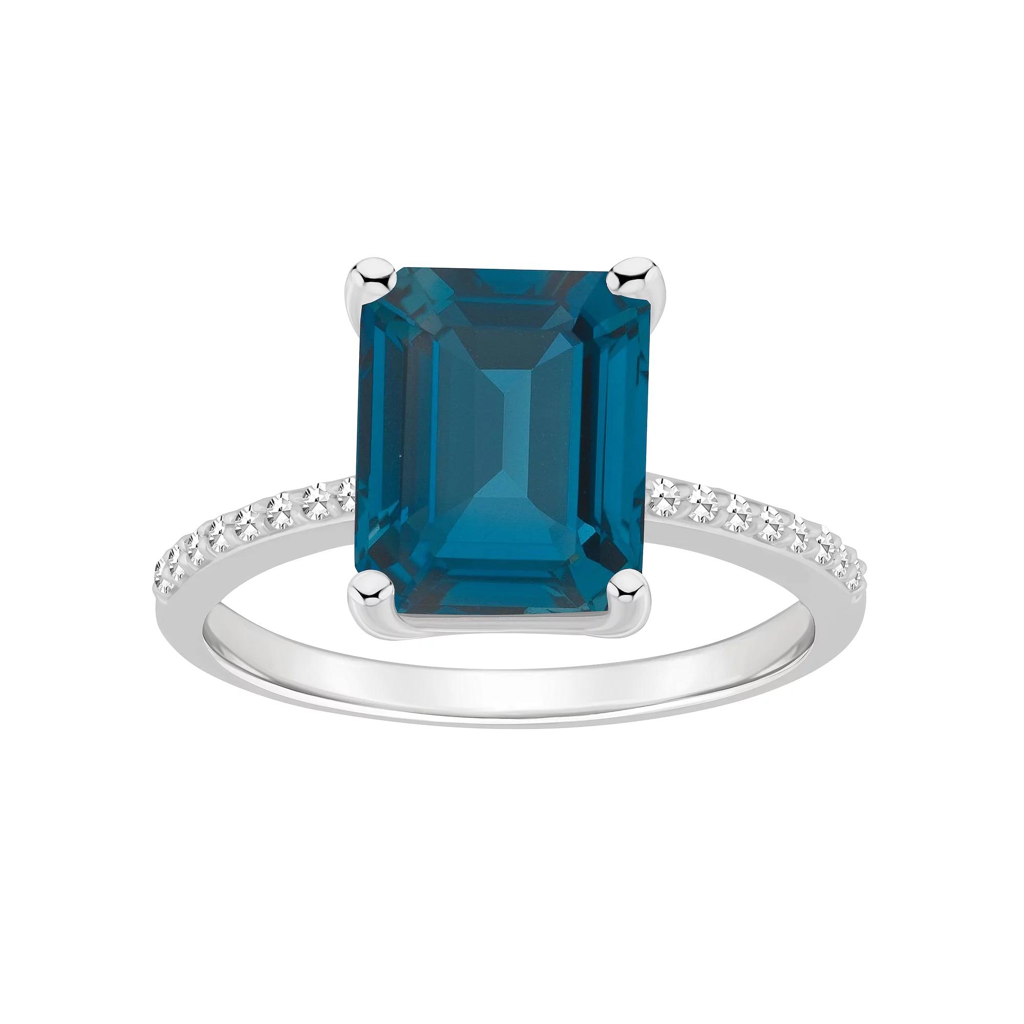 Complete your fashionable look with this stylish Alyson Layne gemstone and diamond ring. Complete your fashionable look with this stylish Alyson Layne gemstone and diamond ring. Width: 1/3 in. Nickel free Metal: sterling silver Plating: rhodium Finish: polished Packaging: boxedSTONE DETAILS Center stone size: 10 mm x 8 mm Shape: emerald cut, round Setting: prongDIAMOND DETAILS Total weight: 1/10 ct. Shape: round Setting: prong Gemstones may have been treated to enhance their appearance. Special care may be required. Please visit our Gemstone Treatment & Special Care Guide for more information. Image(s) may be enlarged to show detail. Diamond weights are approximate. Diamond Total Weights may vary between .01 and .13 ct. Some diamonds consist of fewer than 17 facets. Color: Blue. Gender: female. Age Group: adult.