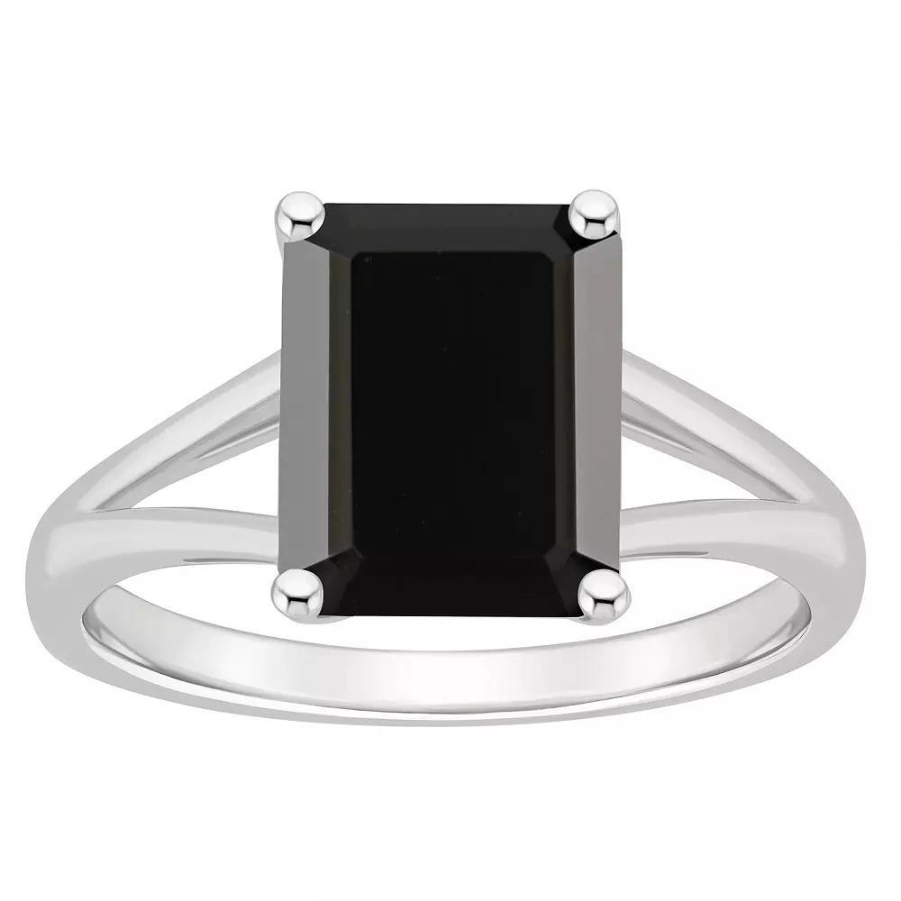 Accessorize in style with this Alyson Layne Black Onyx Ring. Click on this JEWELRY & WATCHES GUIDE to learn about fit, styles, materials and more! Accessorize in style with this Alyson Layne Black Onyx Ring. Click on this JEWELRY & WATCHES GUIDE to learn about fit, styles, materials and more! FEATURES Width: 3/8 Shank style: split Band fit: rounded Metal: sterling silver Plating: rhodium Finish: polished Packaging: boxed Imported Nickel freeSTONE DETAILS Stone type: onyx Total weight: 3 1/6 ct. Center stone size: 10 mm x 8 mm Shape: emerald cut Setting: prong Gemstones may have been treated to enhance their appearance. Special care may be required. Please visit our Gemstone Treatment & Special Care Guide for more information. Gender: female. Age Group: adult.