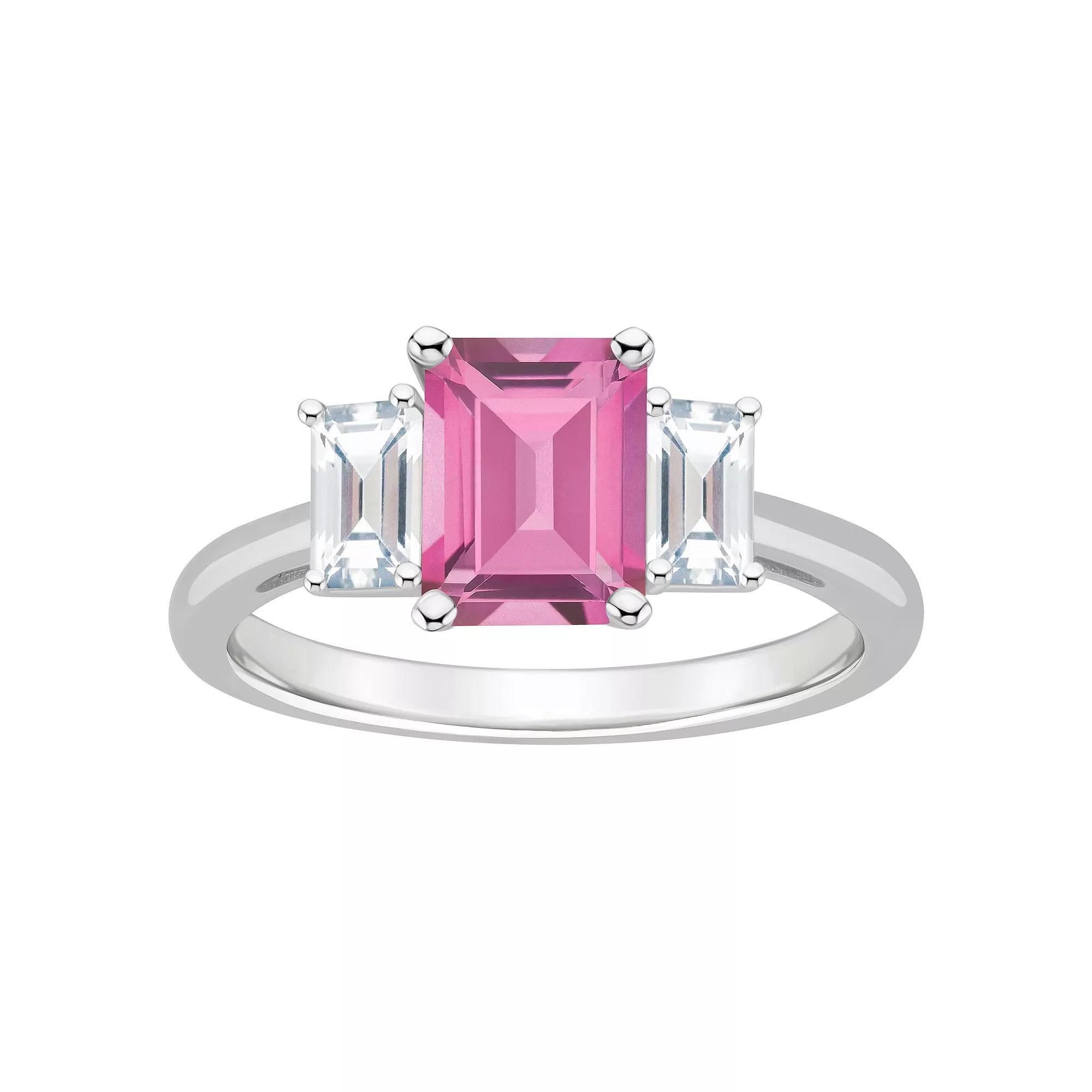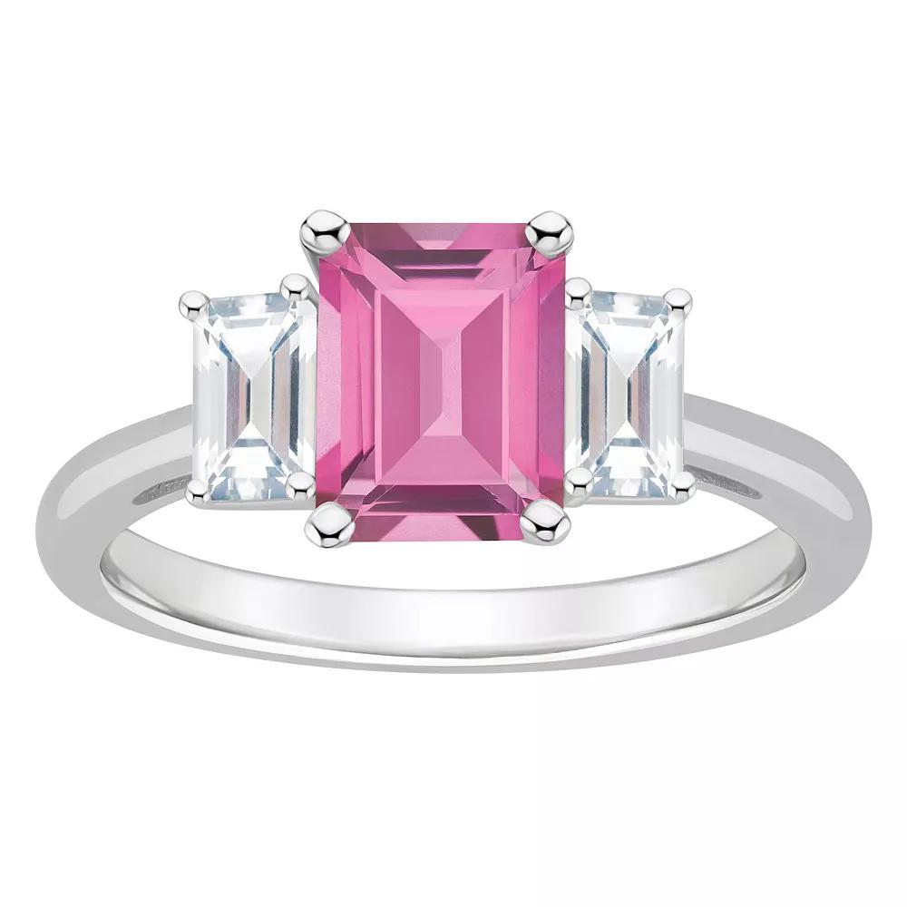 Accent your ensemble with this stunning Alyson Layne Pink Topaz & White Topaz Three-Stone Ring. Click on this JEWELRY & WATCHES GUIDE to learn about fit, styles, materials and more! Accent your ensemble with this stunning Alyson Layne Pink Topaz & White Topaz Three-Stone Ring. Click on this JEWELRY & WATCHES GUIDE to learn about fit, styles, materials and more! FEATURES Width: 1/3 Shank style: traditional Band fit: rounded Metal: sterling silver Plating: rhodium Finish: polished Packaging: boxed Imported Nickel freeSTONE DETAILS Stone type: pink topaz Total weight: 2 3/4 ct. Center stone weight: 2 ct. Center stone size: 8 mm x 6 mm Shape: emerald cut Setting: prong Gemstones may have been treated to enhance their appearance. Special care may be required. Please visit our Gemstone Treatment & Special Care Guide for more information. Gender: female. Age Group: adult.