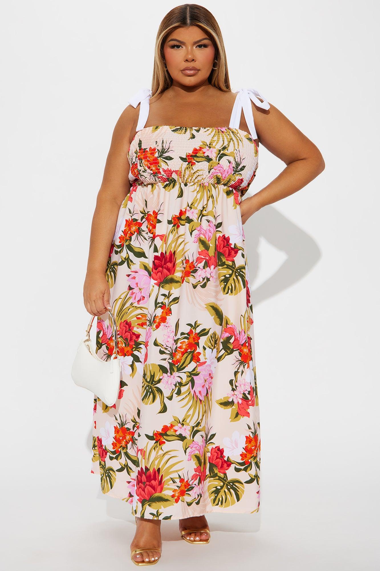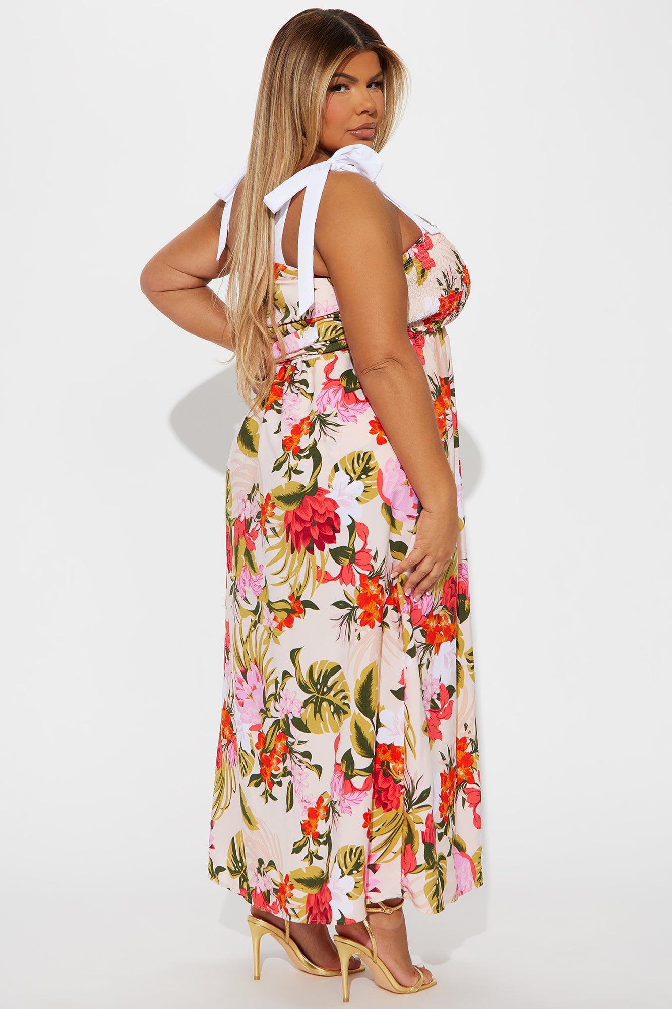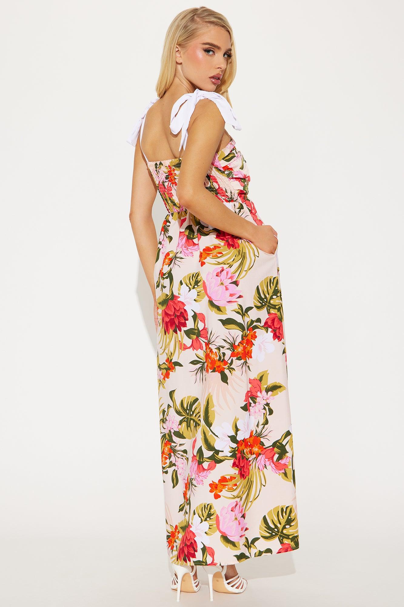 Alyssa Tie Shoulder Maxi Dress - Peach/combo