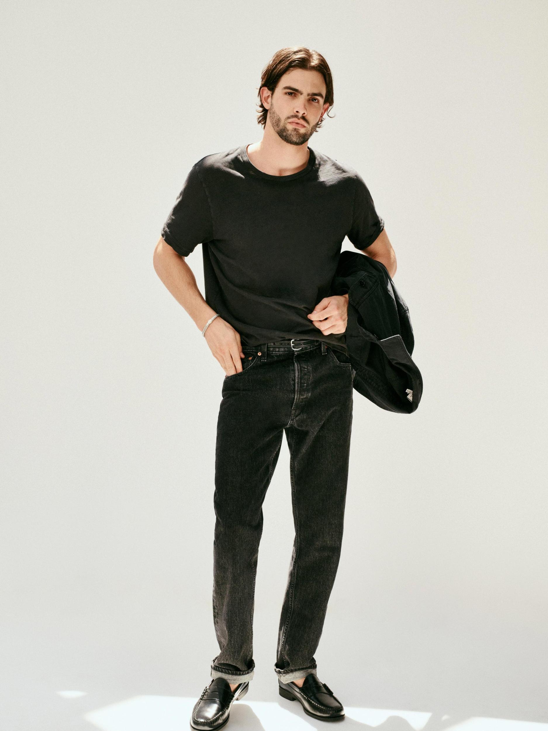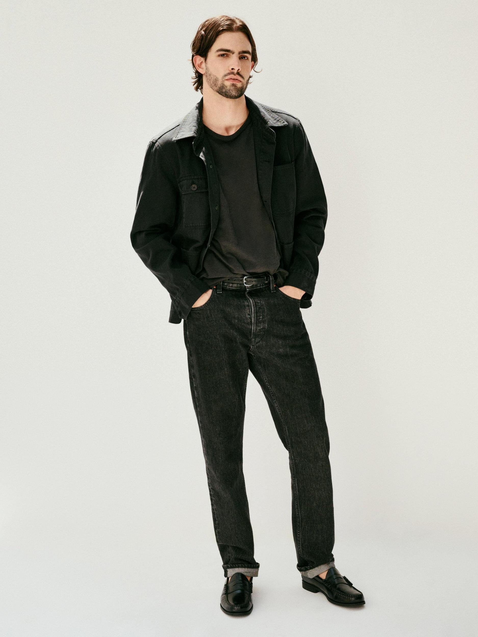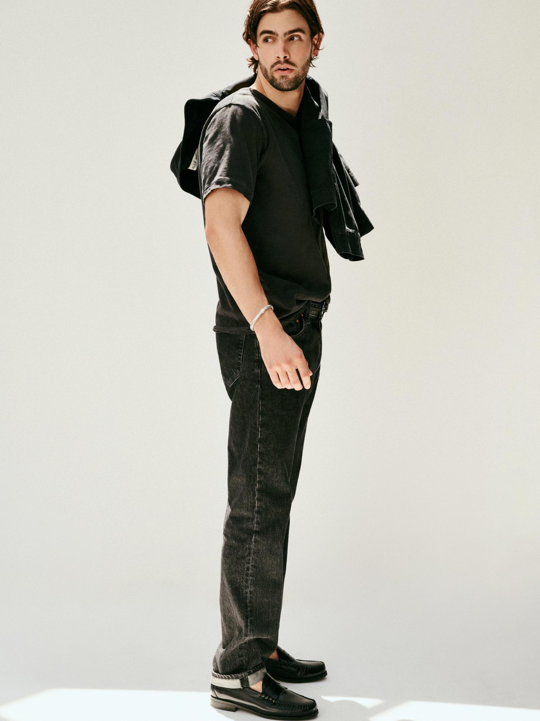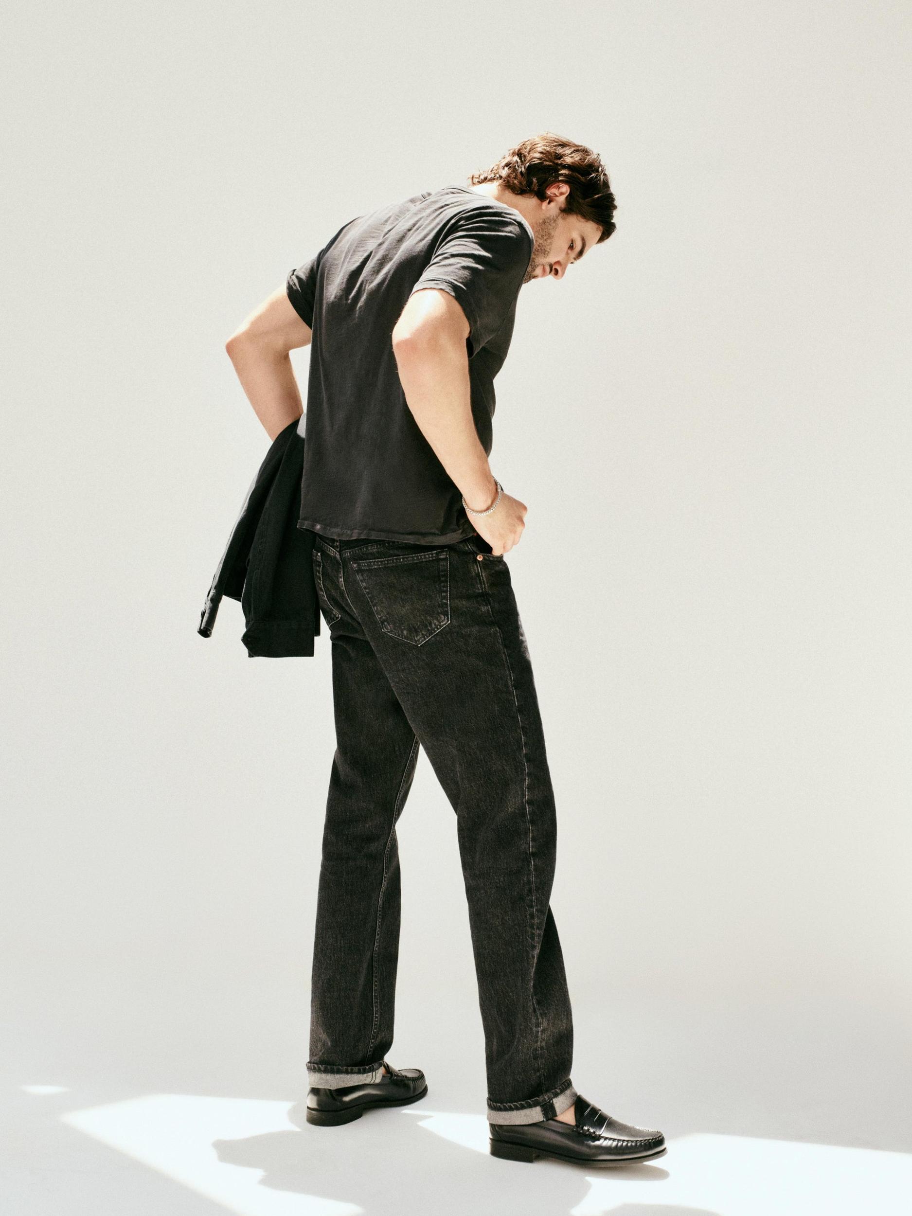 If you like a classic straight, slightly tapered cut, these are the ones. 11.75" mid-rise Easy and comfortable fit 32" Inseam Button Fly 15 oz, 100% non-stretch cotton. Fits true to size. If you're in between sizes we recommend sizing up. Gordon is 6'1" and wearing a size 32. Size 32 measures 33.5" around the waist and