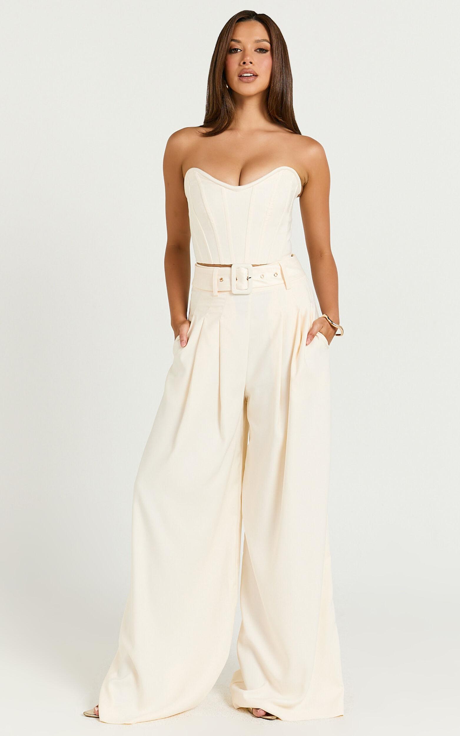Discover the perfect look with our Amalie The Label - Raquelle Pleated Wide Leg Belted Pants in Ivory. This stunning pair is more than just pants; it's a statement of class and confidence. Designed to flatter every body type, these straight-leg pants crafted from a mid-weight woven polyester promise both comfort and durability, making them a wardrobe must-have for the modern woman.Product Details:Zips and pocketsInner liningStraight leg styleMid weight wovenFull lengthHigh waistedPolyester materialPerfect for party daySize and FitSize S / 8 length: 115cm / 45.28inMaterial and CareMain Fabric: 97% Polyester, 3% Spandex Lining: 100% PolyesterLow Stretch