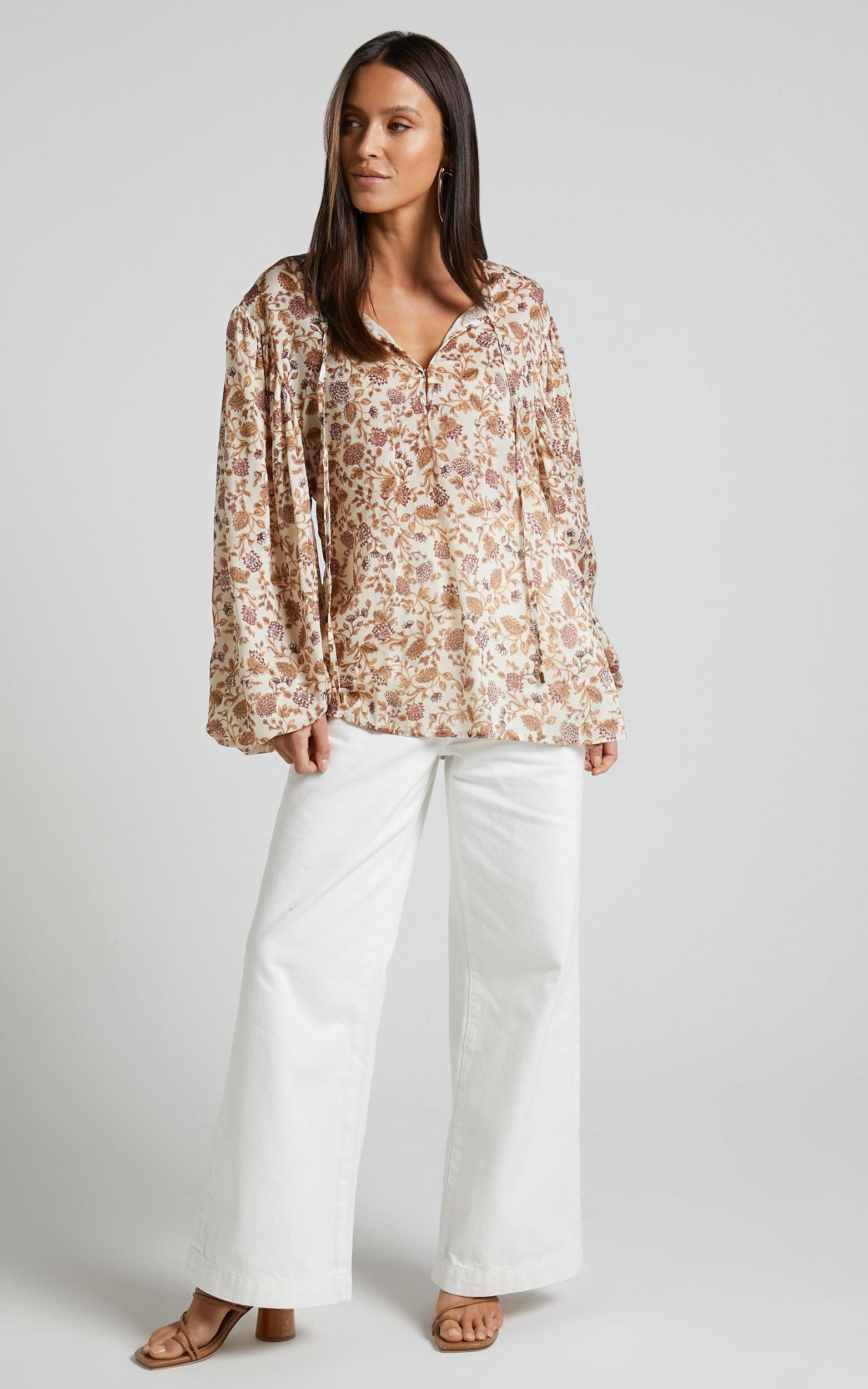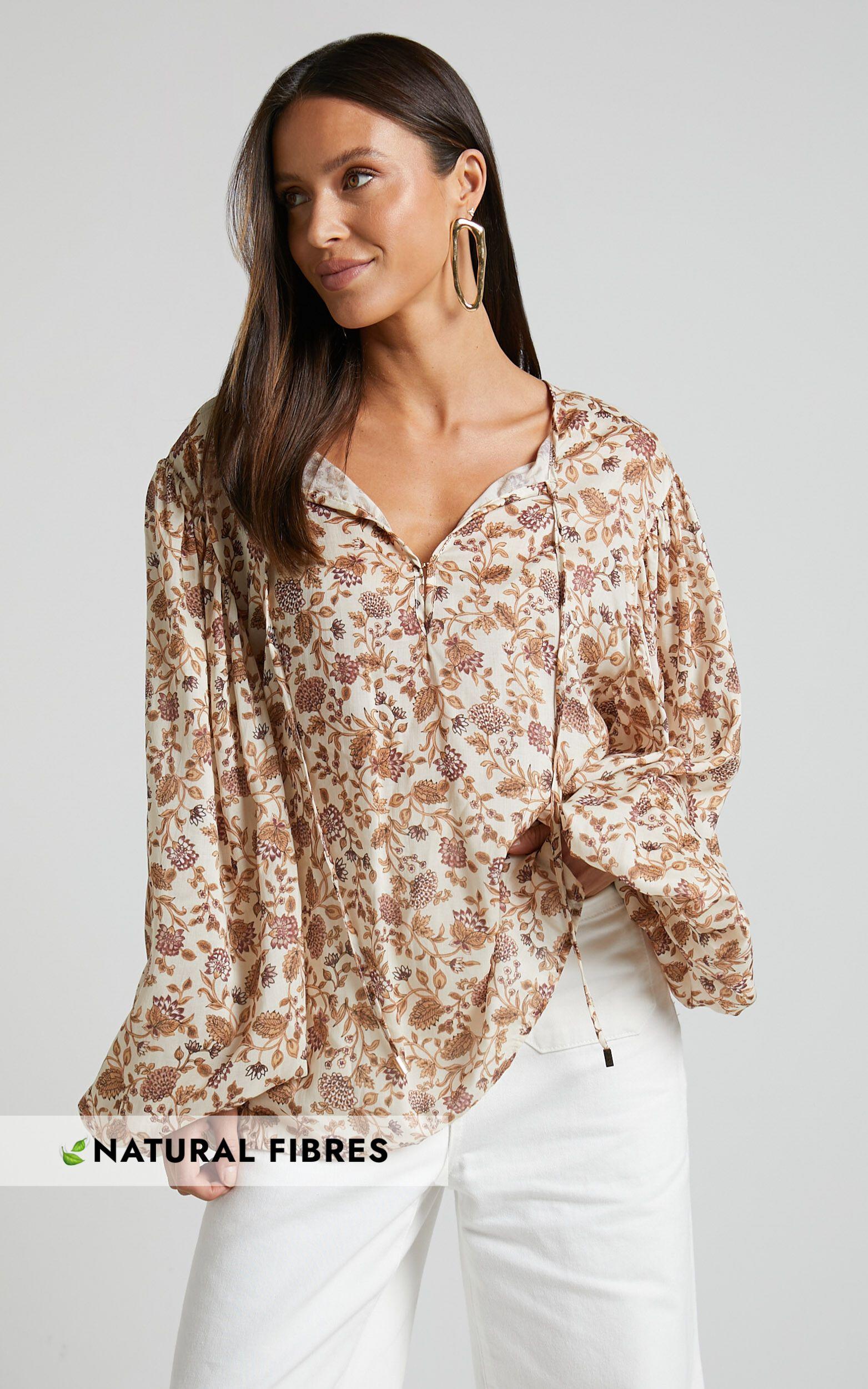 Make a statement with the Amalie The Label - Symmone Puff Sleeve Blouse In Maya Floral. This stunning white blouse is perfect for any occasion, whether it's a party day or weekend activity. Crafted from high-quality viscose, this top features beautiful puff sleeves that add a touch of elegance to your look. The crew neckline and long sleeves make it ideal for autumn, keeping you stylish and comfortable as the weather cools down. With its standard fit, this blouse is both flattering and versatile, easily paired with jeans or skirts for a chic ensemble. Upgrade your wardrobe with this must-have piece from Amalie The Label and embrace your unique style with confidence.Product Details:Shirts & Blouses categoryTops subcategoryCrew necklineLong sleevesMade of viscose fabricStandard lengthSuitable for autumn seasonVersatile for party days and weekend activitiesSize and FitSize S / 8 length: 71cm / 27.95inStudio model is wearing size XS / 6 AU / 2 US / 6 UK / 34 EUStudio model measurements are:Height: 170cm / 5'7''Bust: 84cm / 33''Waist: 61cm / 24''Hip: 88cm / 35''Material and CareMain Fabric: 100% TencelLow / No stretch
