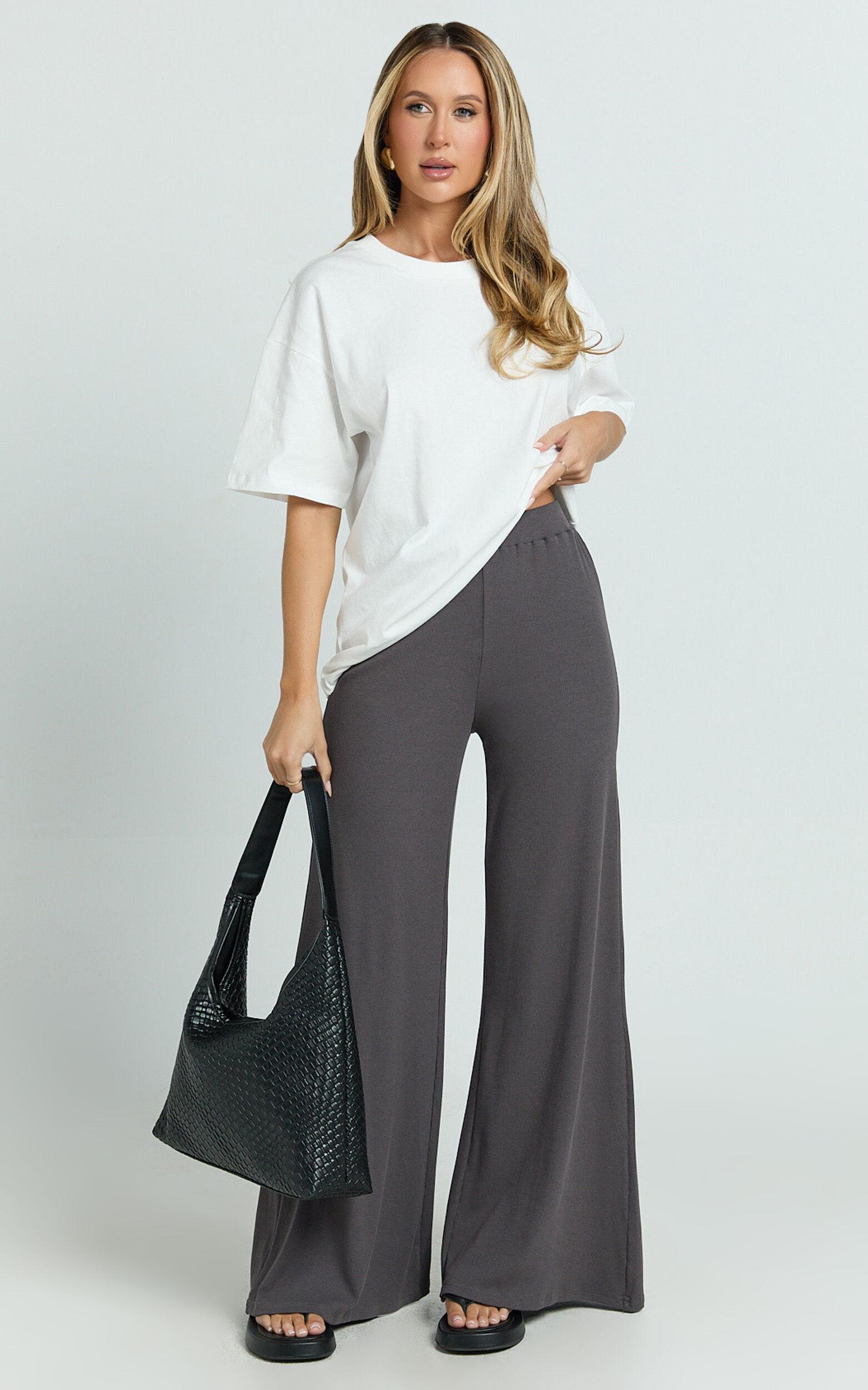 Elevate your wardrobe essentials with our Amalthea Pants – your new go-to high-waisted jersey rib wide-leg pants in a chic charcoal grey. These aren't just any pants; they're the foundation of a killer outfit, blending the ultimate comfort of loungewear with the sharp, put-together look that takes you from a laid-back weekend activity straight to a statement-making evening out.Product Details:Relaxed PantWide LegCotton fabricBasics, CasualLoungewear, WeekendFull LengthHigh WaistSize and FitSize S / 8 length: 106.5cm / 41.93inStudio model is wearing size XS / 6 AU / 2 US / 6 UK / 34 EUStudio model's height is 170cm / 5'7''Material and CareMain Fabric: 90% Cotton, 10% SpandexLow / No stretch