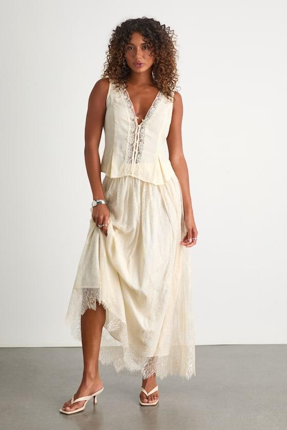 From fun at festivals to frolicking through fields, this eyelash lace skirt is bound to create the trendiest Boho-chic looks no matter the season or reason. The flowy A-line silhouette is perfect for warm day activities, complete with a high elasticized waistband and sweeping maxi hem. Style with boots for a Western-inspired ensemble or chic sandals for a summery vibe.
