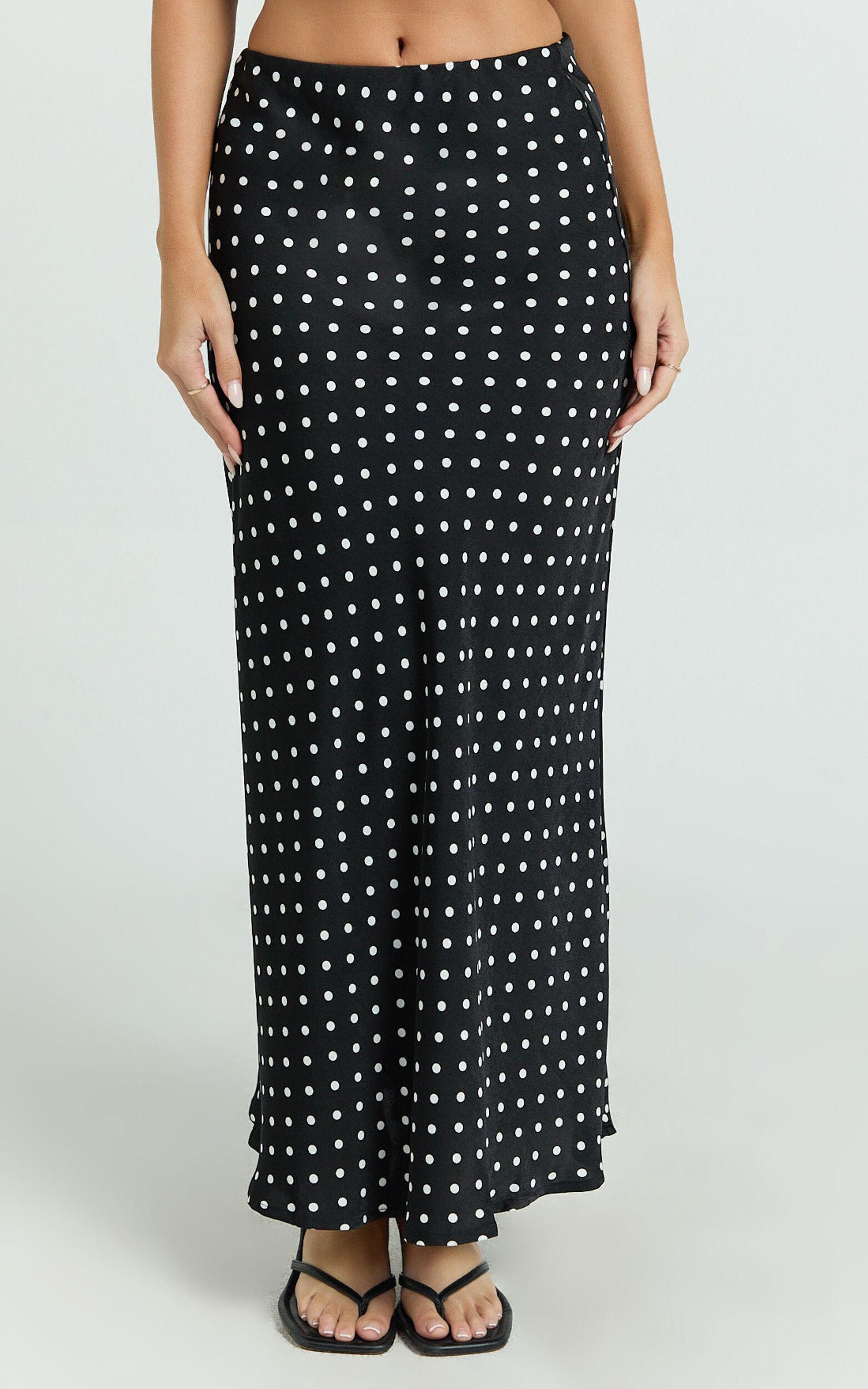 Amari Maxi Skirt - High Waisted Bias Cut Skirt in Black Polka Dot
