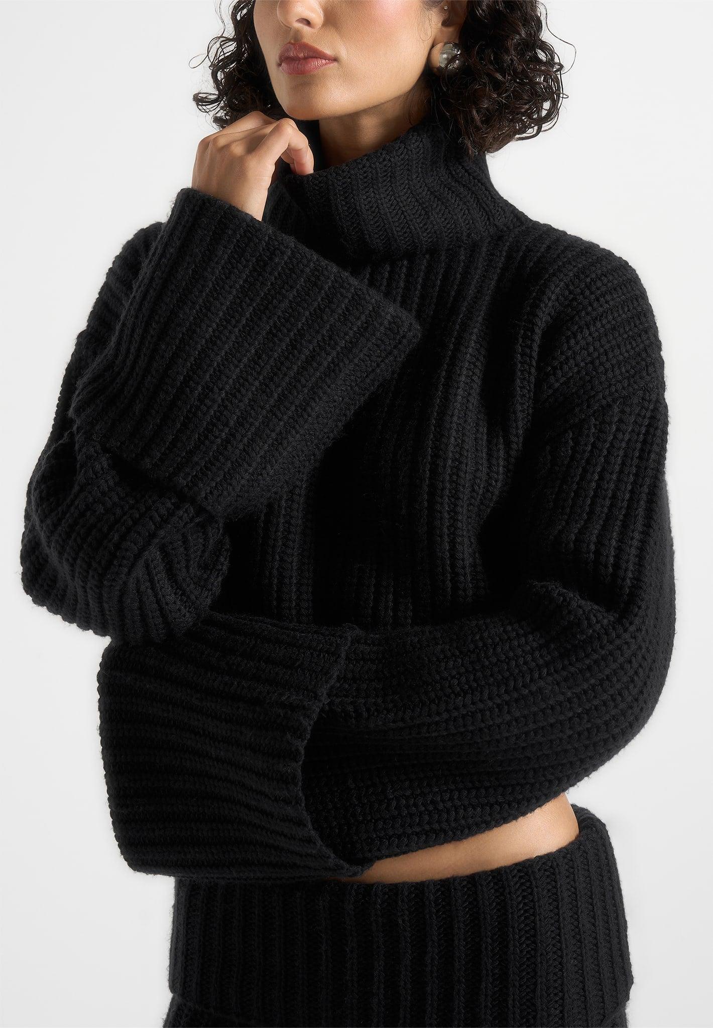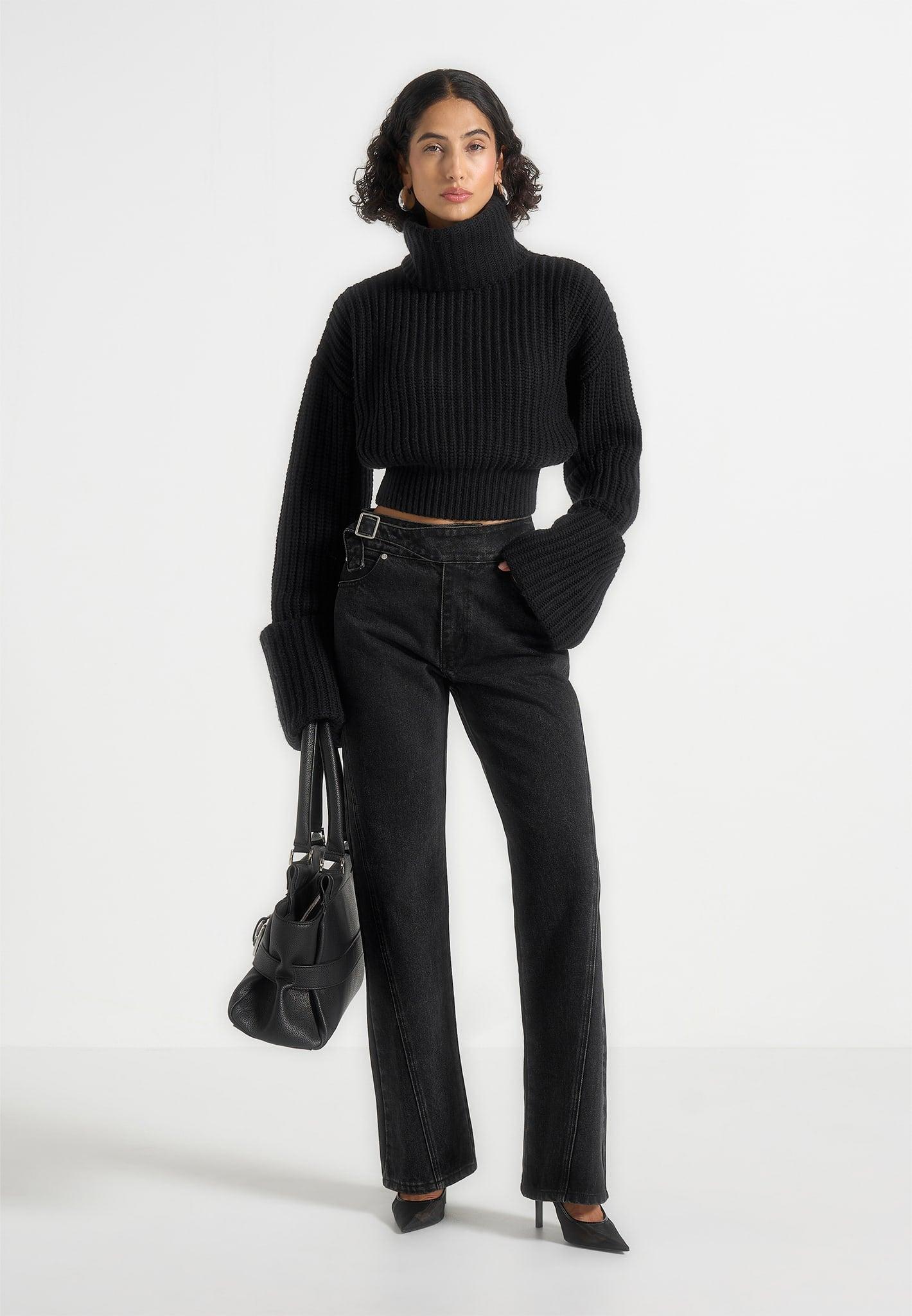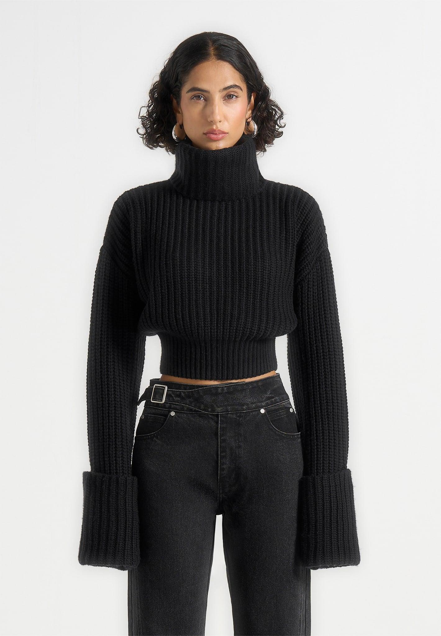 Cut from soft knit fabric, this piece delivers comfort with a refined finish. The roll-neck silhouette adds a clean, polished edge, balanced by deep cuffs that bring structure and detail to the sleeves. Designed with a cropped shape, it offers a modern, versatile layer that transitions effortlessly across looks. Crafted from knit fabric for a soft, comfortable feel Roll-neck silhouette for a clean, refined edge Deep cuffs for added structure and detail Cropped silhouette for a modern, versatile look Tonal Manière De Voir vegan leather Eiffel patch to centre back