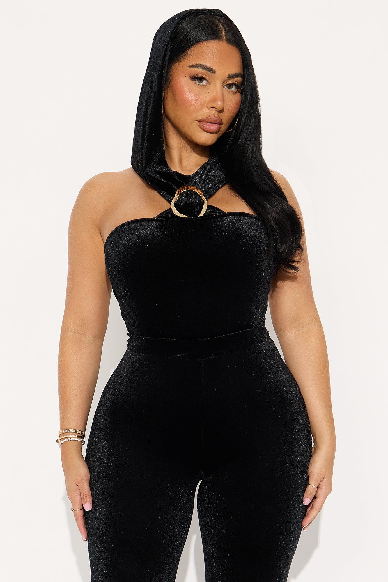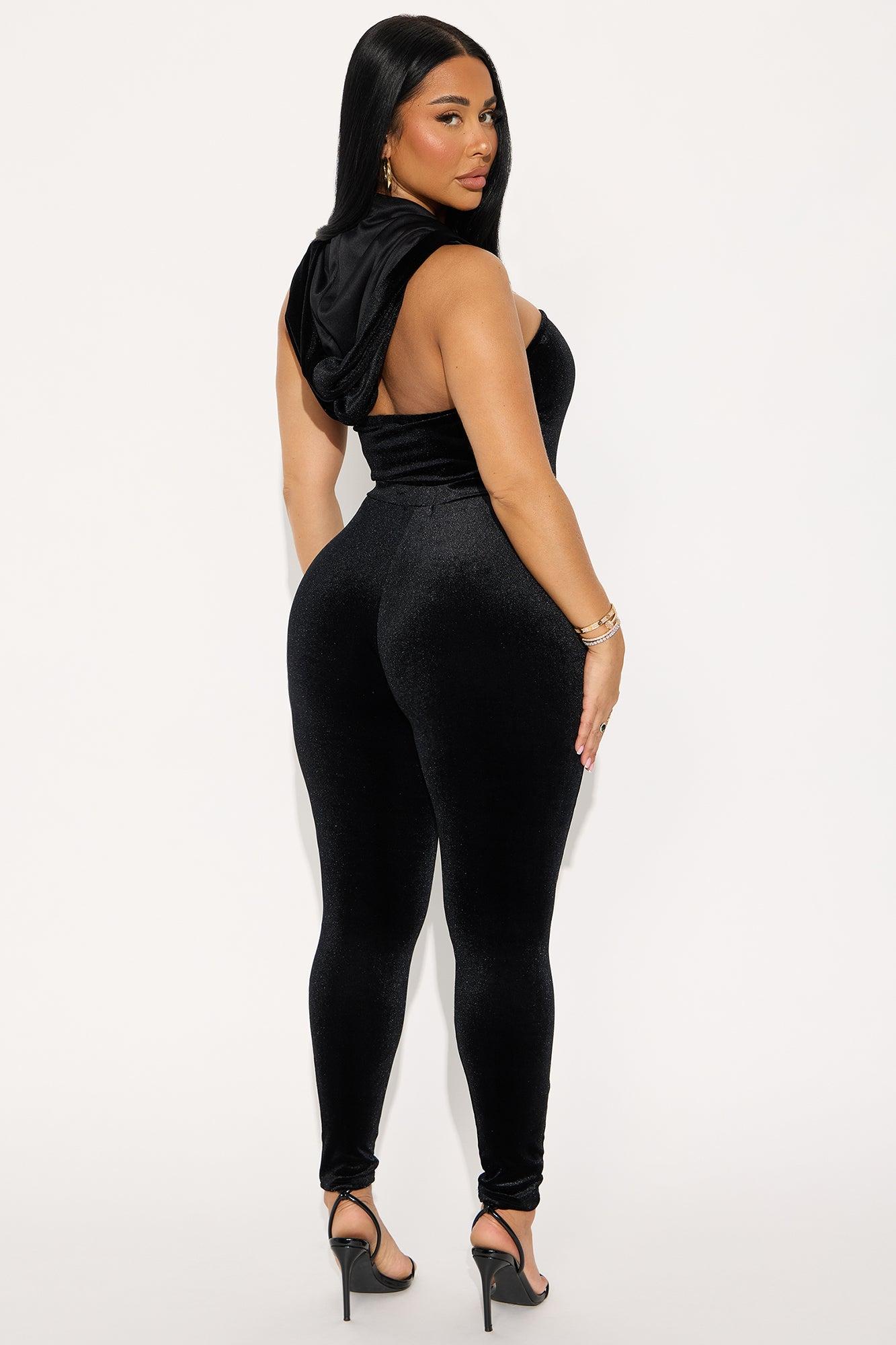 Available In Black And Plum. 2 Piece Ensemble Hooded Bodysuit And Legging Set Stretch 29" Inseam Hardware Detail Elastic Waistband Top & Bottom Self: 95% Polyester 5% Spandex Lining: 100% Polyester Imported California Proposition 65WARNING: Cancer and Reproductive Harm - www.P65Warnings.ca.gov.