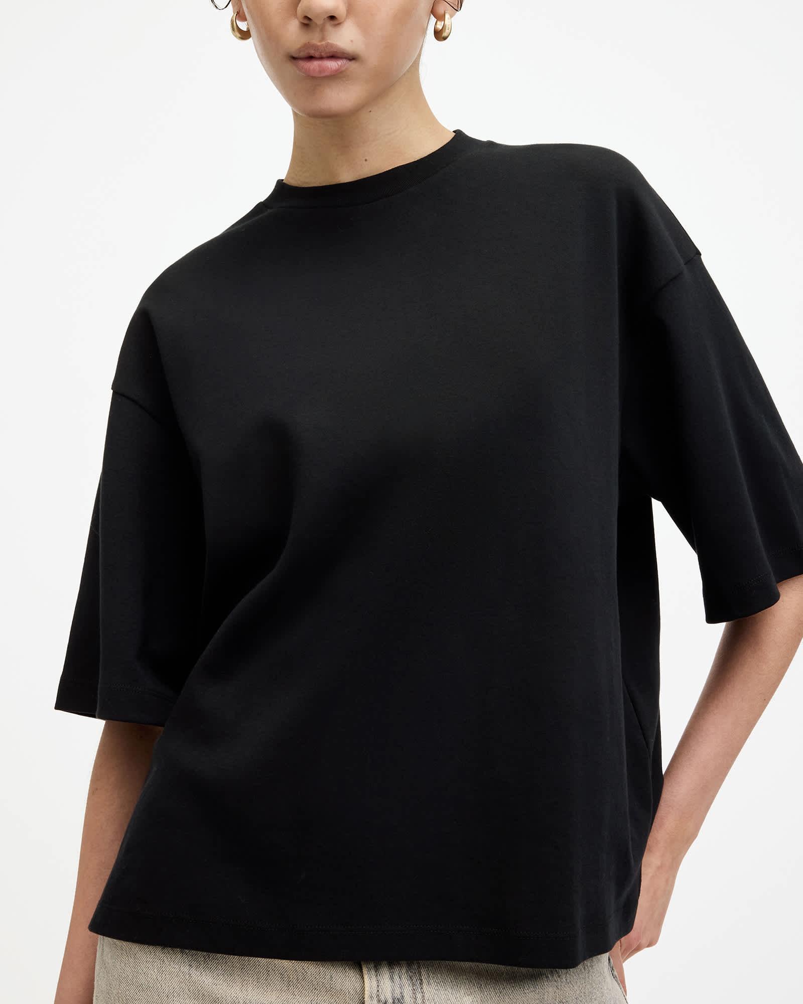 Looking for a versatile styling option? Meet the Amelie T-Shirt. Made from organic cotton, it's shaped to a classic crew neck silhouette with dropped shoulders creating an oversized, boxy fit. At the back there's a slight curved hem to add more dimension to the shape. Soft to touch and easy to wear, it goes with everything - casual jeans, statement slip dresses, leather skirts... you name it. Pullover Crew neck Short sleeve Dropped armhole shaping Curved hem