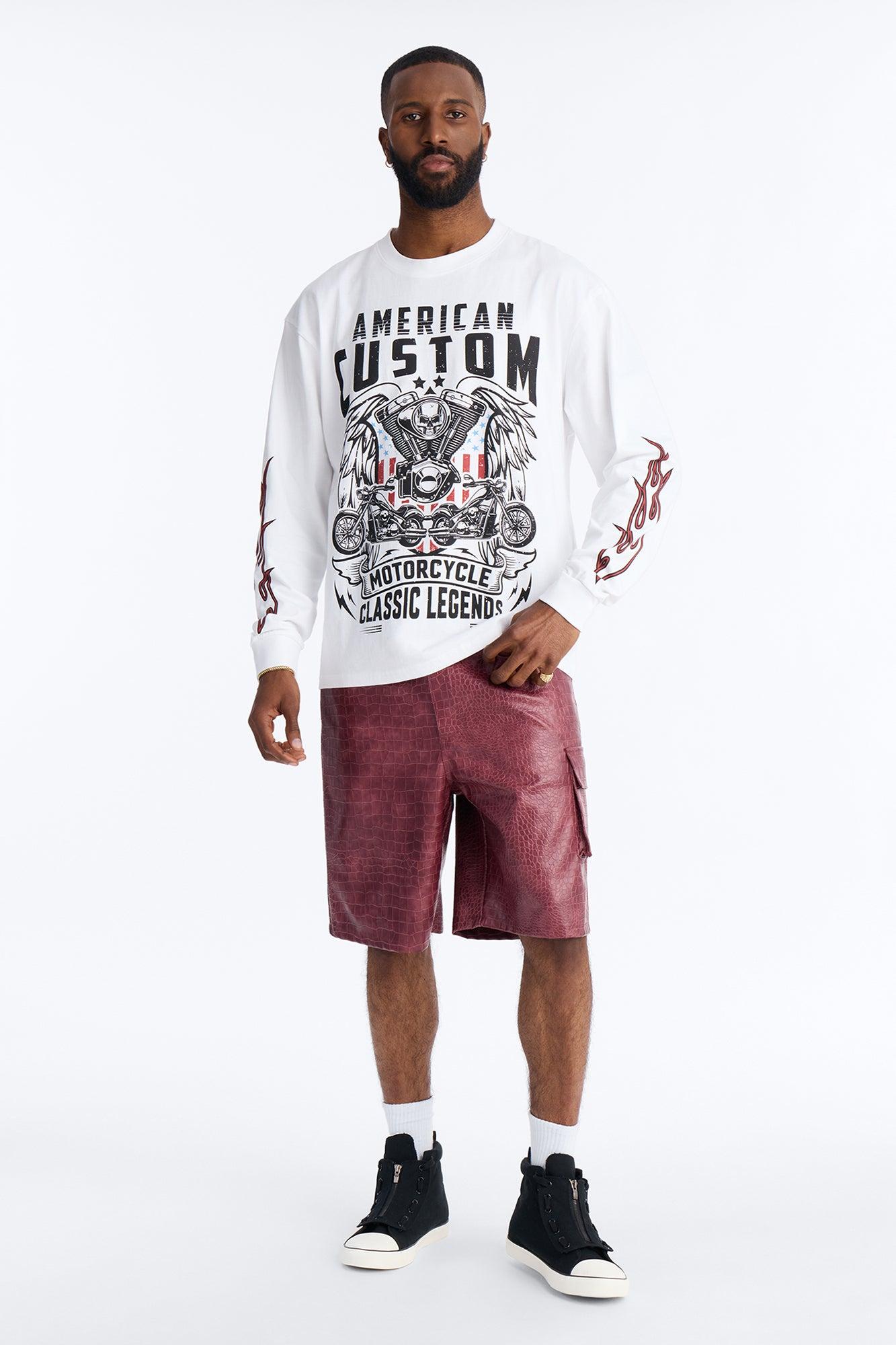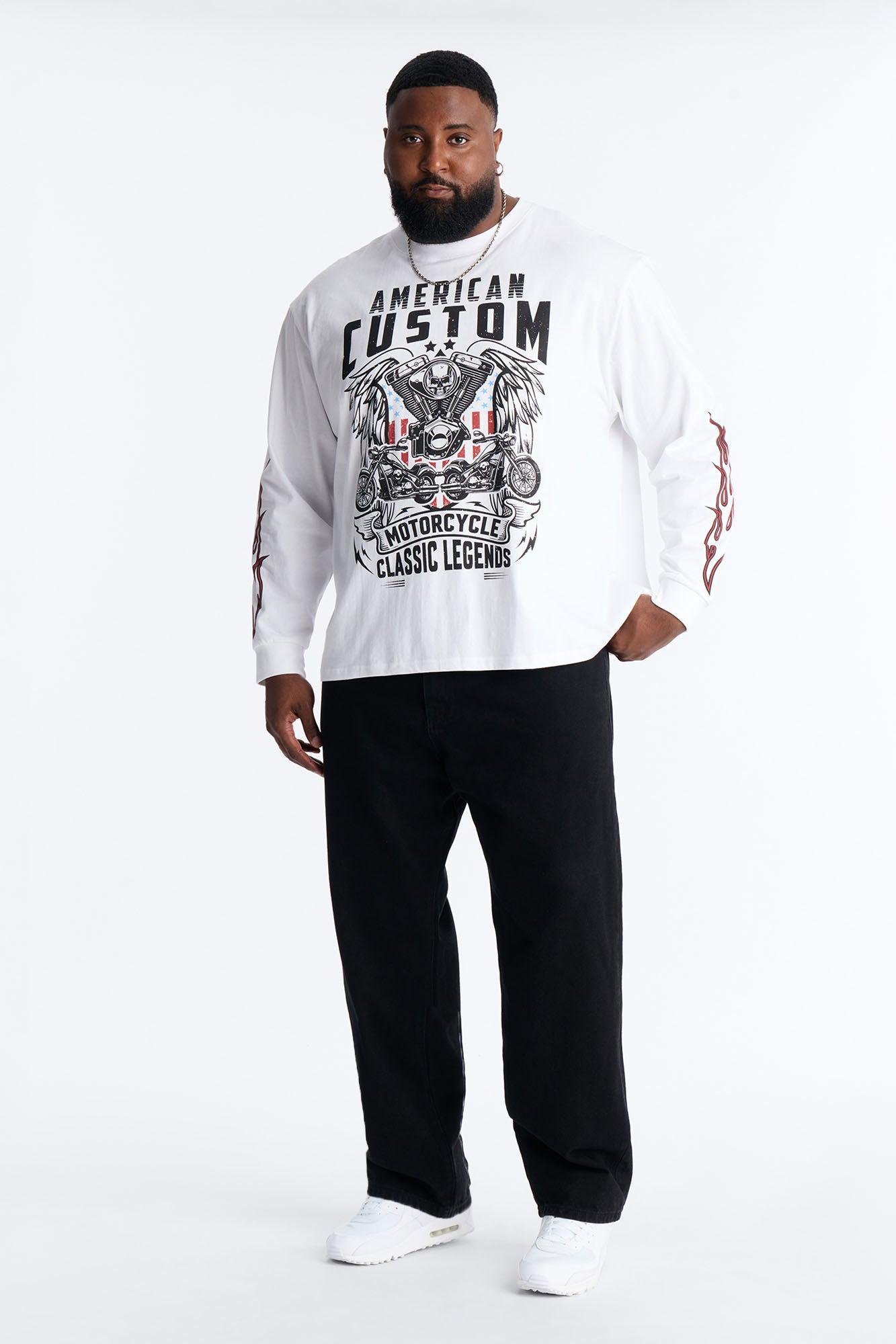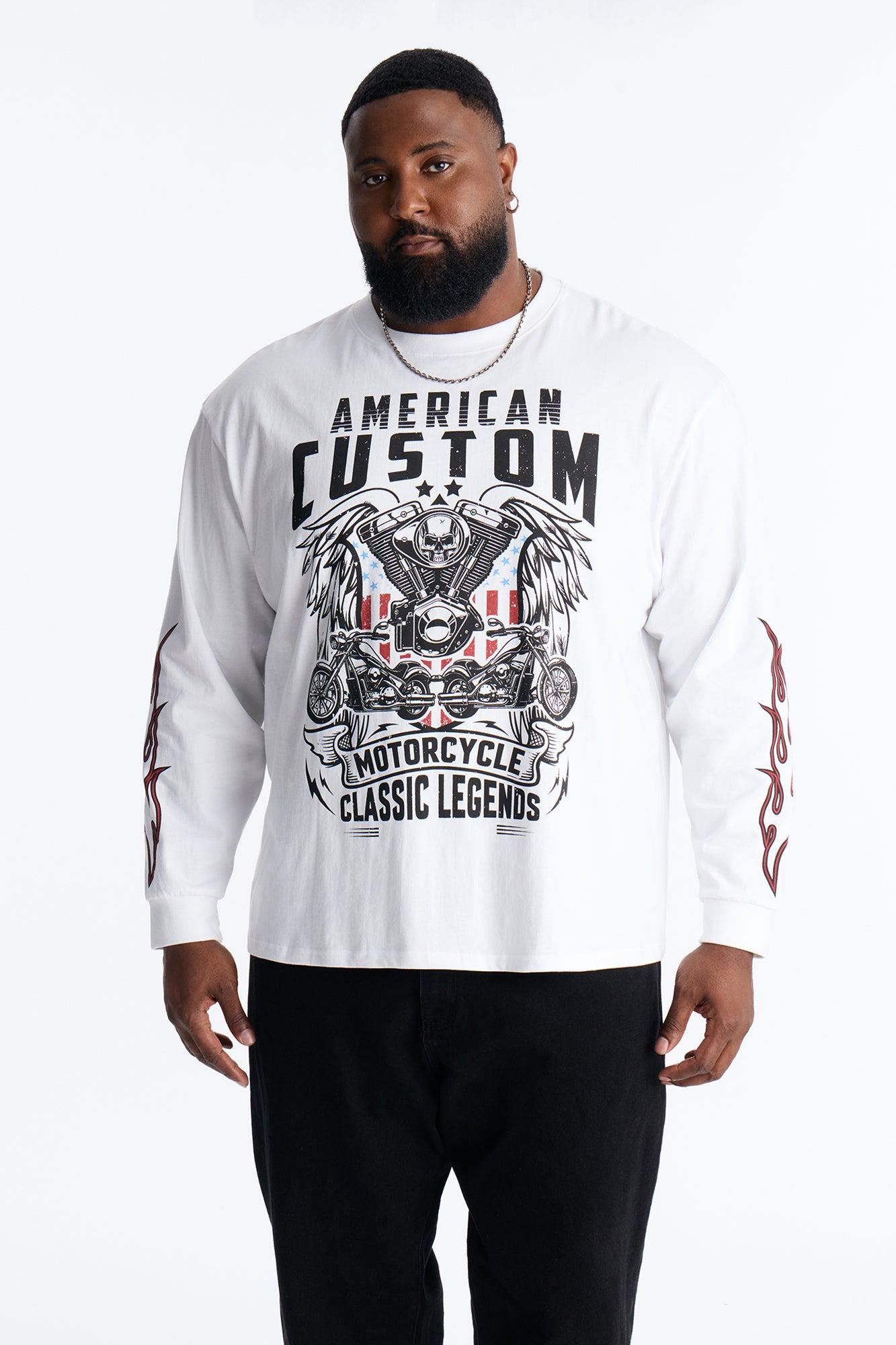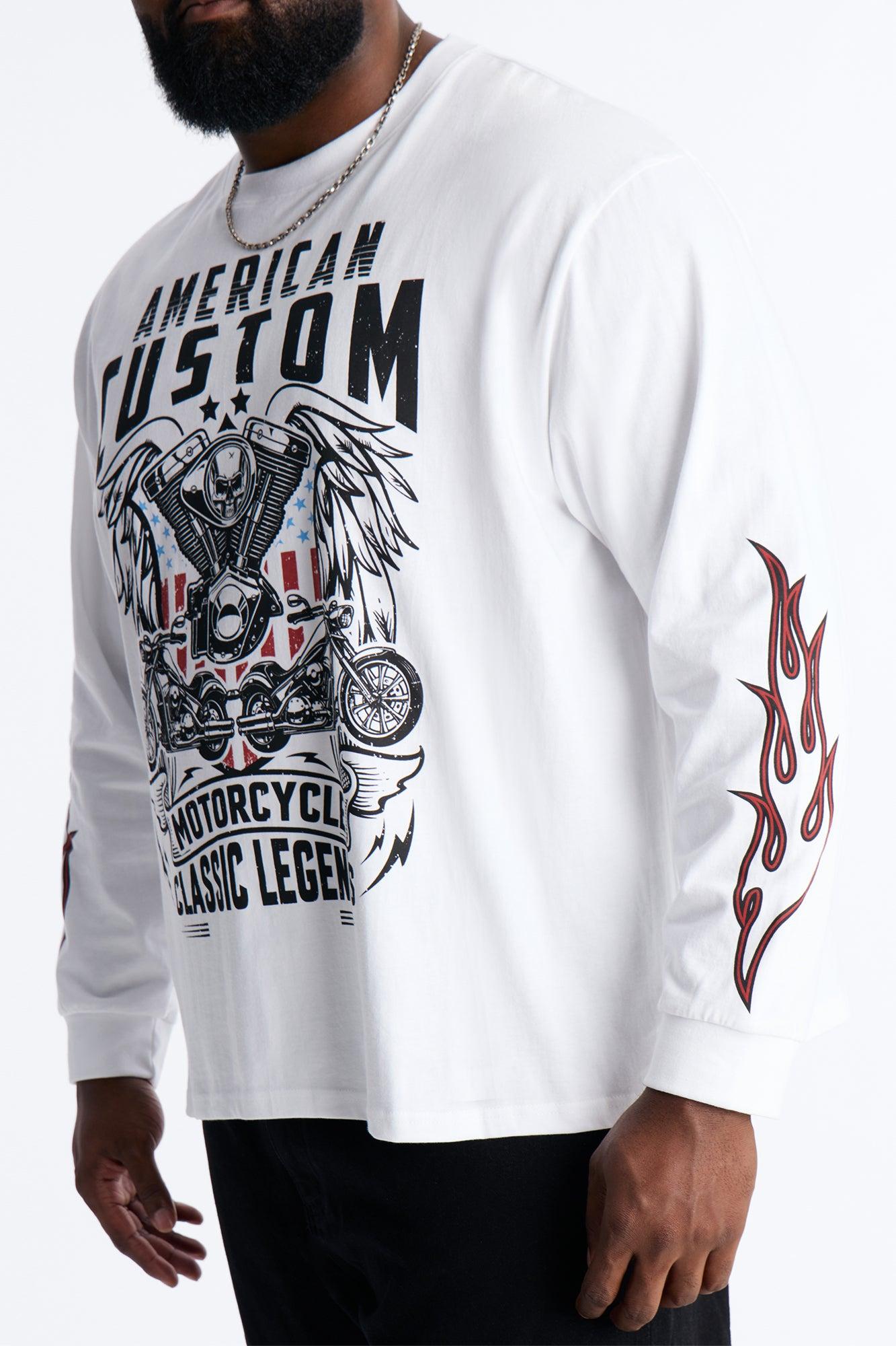 American Custom Motorcycle Oversized Long Sleeve Tee - White