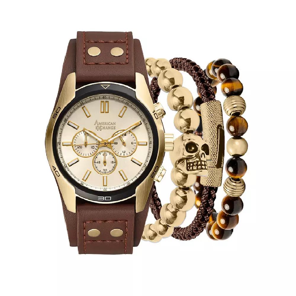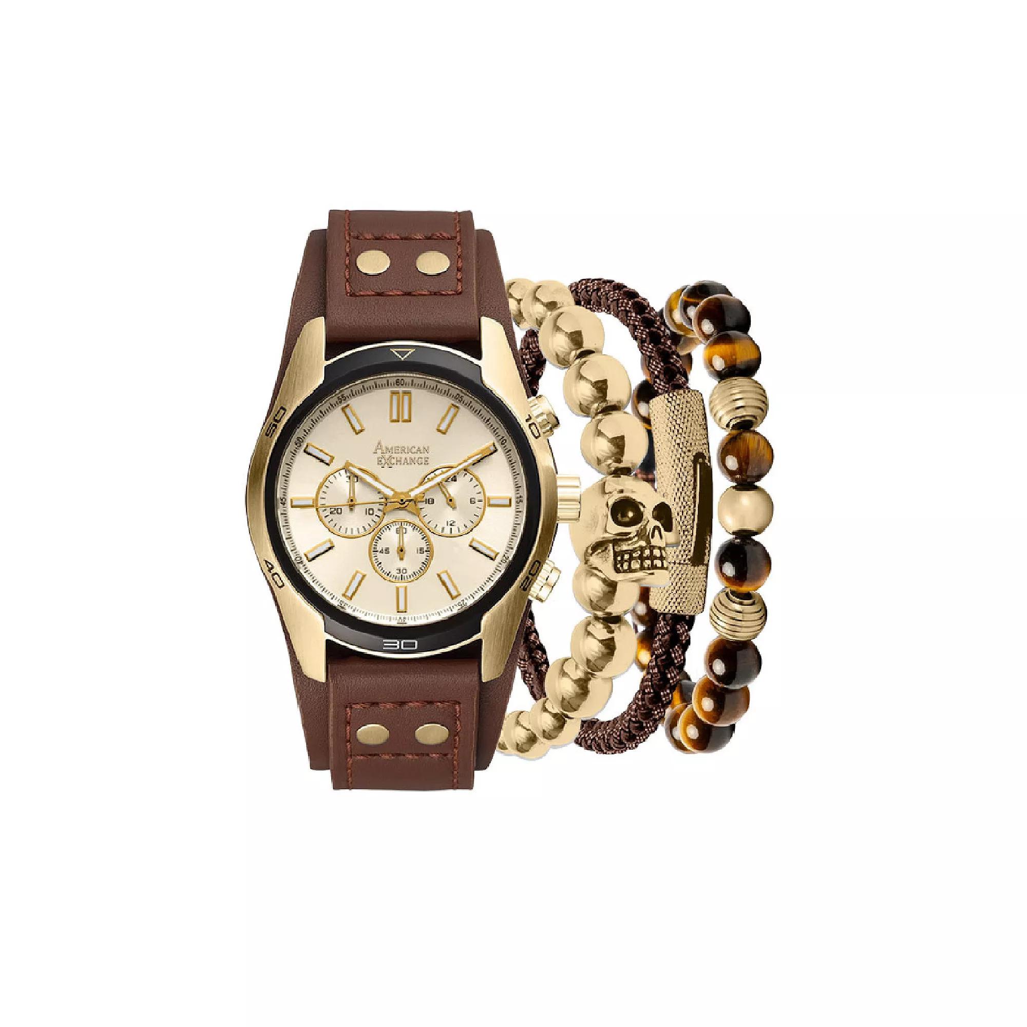 American Exchange Men's Brown Chronograph Watch & Stackable Bracelet Set, Size: Large