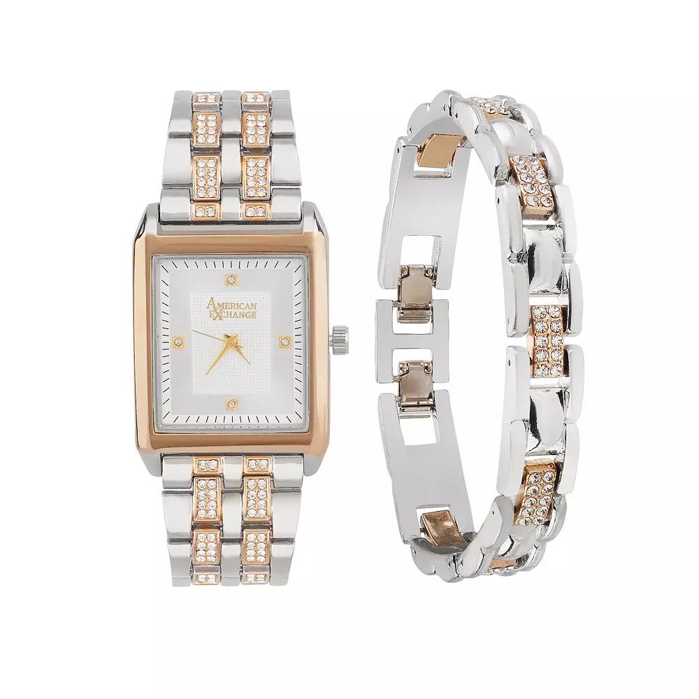 American Exchange Men's Two Tone Metal Alloy Watch & Bracelet Set,