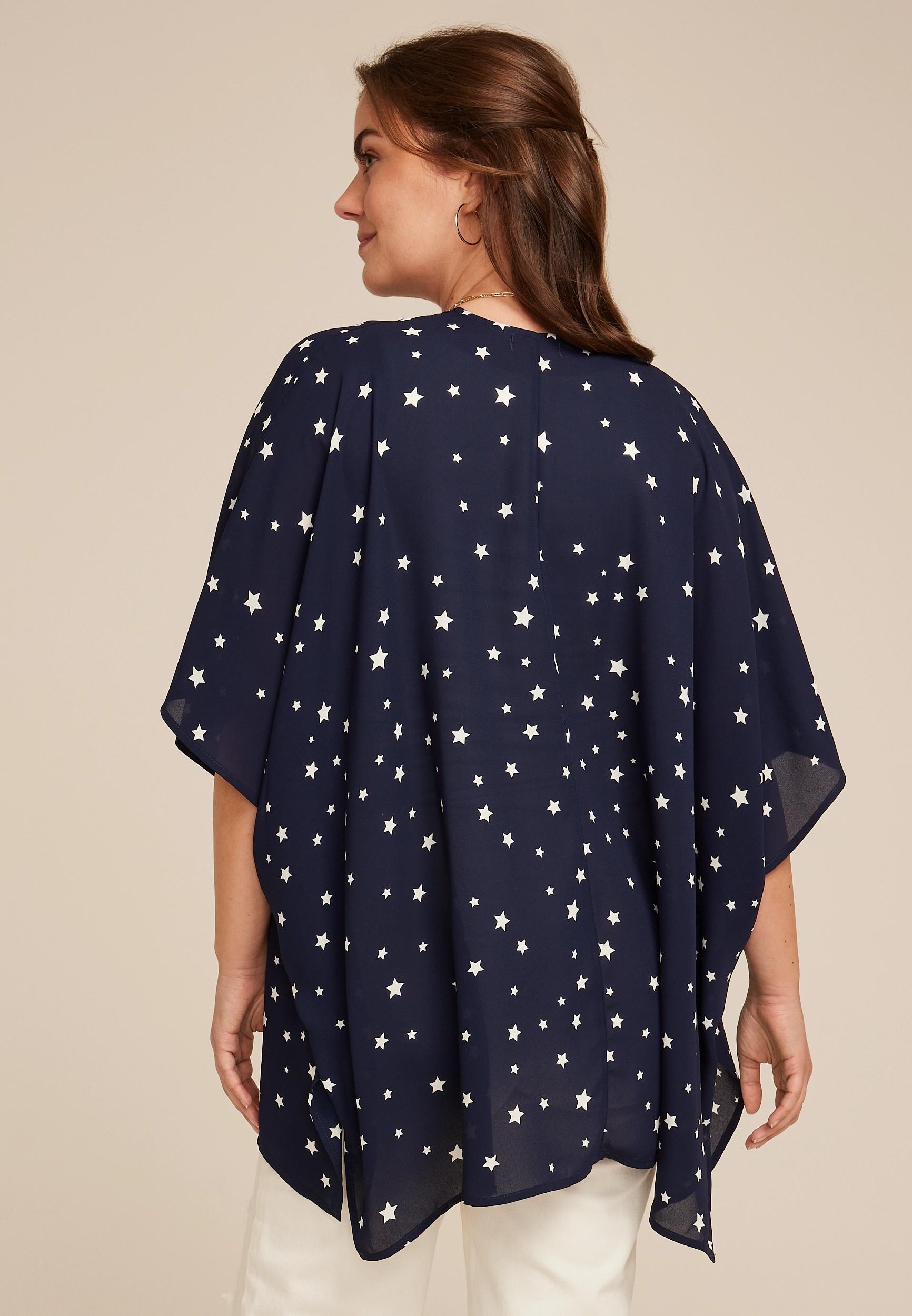.mar-pdp-section .mar-product-description {color: #000;}.mar-pdp-section .mar-product-description ul, .mar-pdp-section .mar-product-description ul>li {margin-left: 10px;padding-left: 10px;}.mar-pdp-section .mar-product-description .mar-product-description-content ul li{list-style-type: disc;margin: 0 0 5px;padding-left: 5px;}.mar-pdp-section .mar-product-description p {color: #000;padding: 5px 0;}@media only screen and (max-width: 1023px){.mar-pdp-section .mar-product-description .mar-product-description-content ul li{list-style-type: disc !important;} .mar-pdp-section .mar-product-description .mar-product-description-content .mar-tab-content ul{padding-left: 10px;}.mar-pdp-section .mar-product-description .mar-product-description-content .mar-tab-content {font-weight: 300;}} Features: lightweight flowy fabric star print elbow length short sleeves