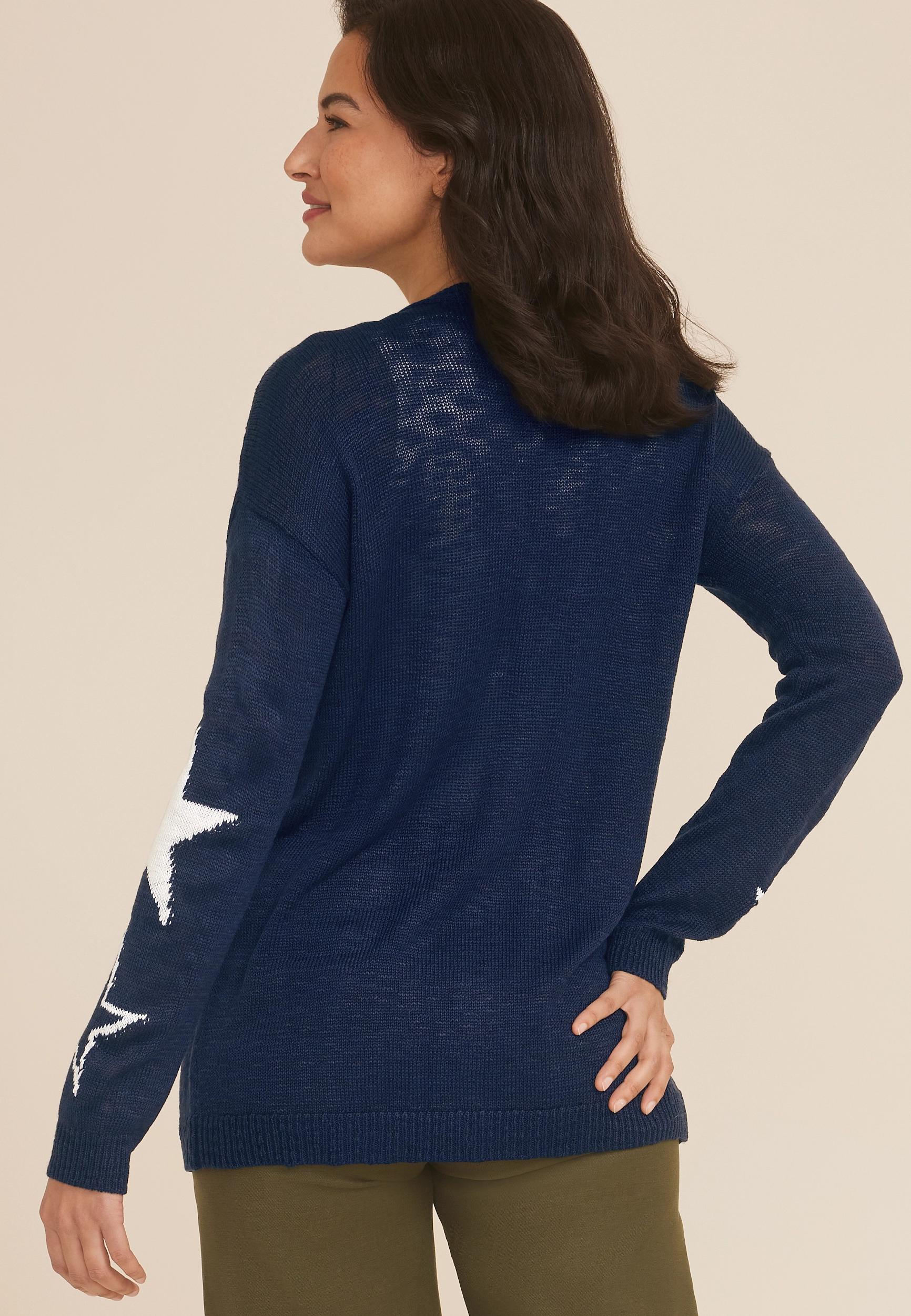 .mar-pdp-section .mar-product-description {color: #000;}.mar-pdp-section .mar-product-description ul, .mar-pdp-section .mar-product-description ul>li {margin-left: 10px;padding-left: 10px;}.mar-pdp-section .mar-product-description .mar-product-description-content ul li{list-style-type: disc;margin: 0 0 5px;padding-left: 5px;}.mar-pdp-section .mar-product-description p {color: #000;padding: 5px 0;}@media only screen and (max-width: 1023px){.mar-pdp-section .mar-product-description .mar-product-description-content ul li{list-style-type: disc !important;} .mar-pdp-section .mar-product-description .mar-product-description-content .mar-tab-content ul{padding-left: 10px;}.mar-pdp-section .mar-product-description .mar-product-description-content .mar-tab-content {font-weight: 300;}} Features: soft fabric all over star patterned detail long sleeves open front style layer with your favorite cami, tank or tee.