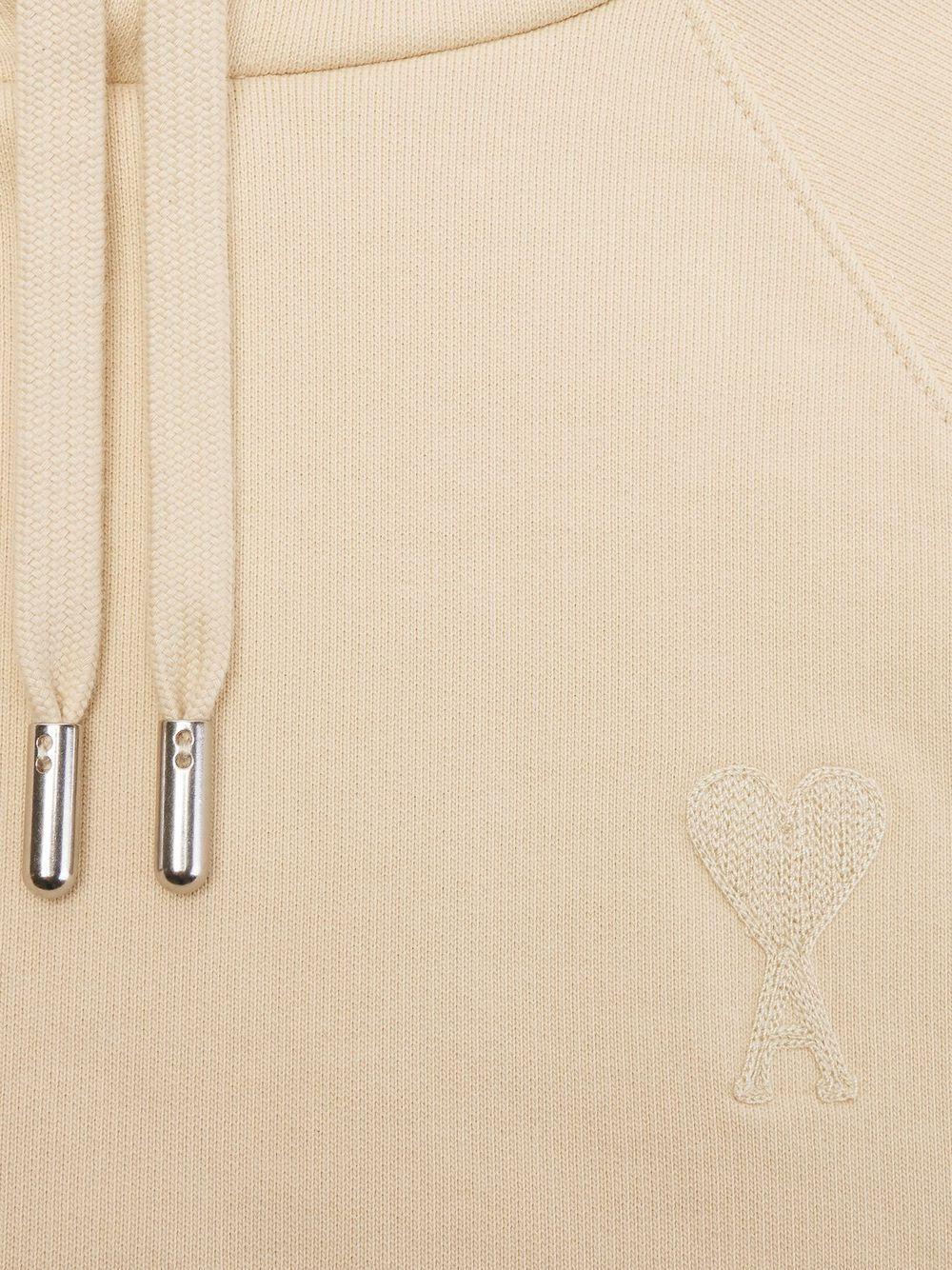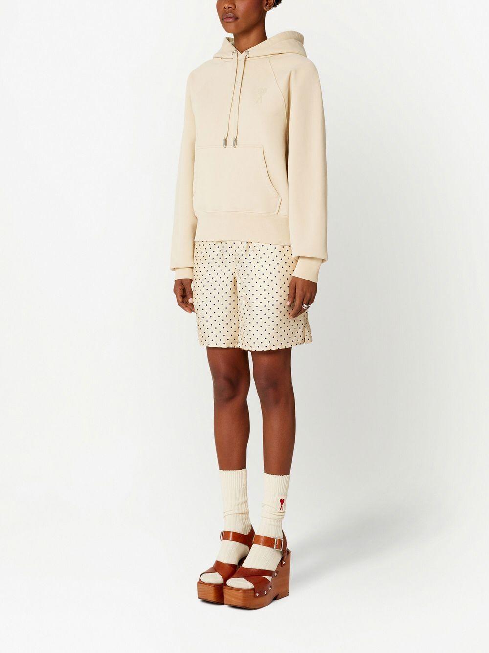 AMI Paris Ami de Coeur long-sleeve hoodie | Neutrals | vanilla white | organic cotton blend | signature Ami de Coeur monogram motif | drawstring hood | front pouch pocket | long sleeves | straight hem | When buying this unisex item, keep in mind that it is graded in standard men's sizing. | Organic Cotton/Elastane | Hoodies | Tops | Clothing | Women | Hoodies | Sweatshirts & Knitwear | Clothing | Men