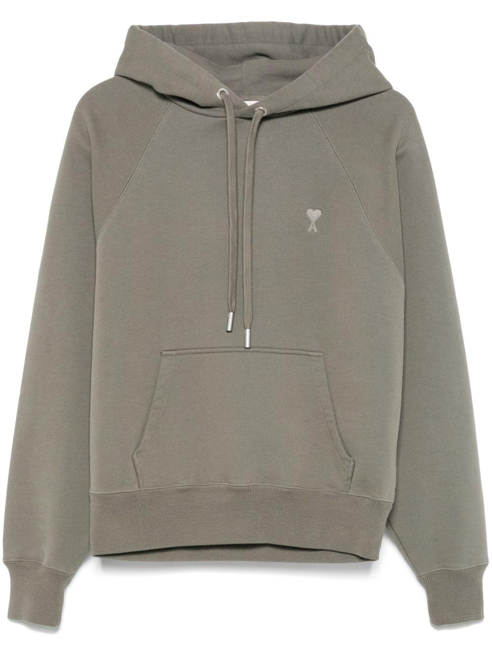 AMI Paris Ami-de-Coeur-motif hoodie | Green | sage green | front pouch pocket | ribbed cuffs and hem | When buying this unisex item, keep in mind that it is graded in standard men's sizing. | Organic Cotton | Hoodies | Tops | Clothing | Women | Hoodies | Sweatshirts & Knitwear | Clothing | Men